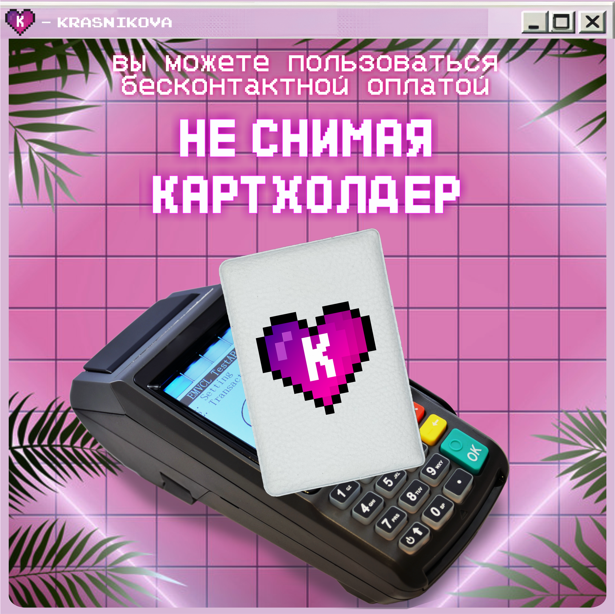 Картхолдер KRASNIKOVA, черный, розовый, белый