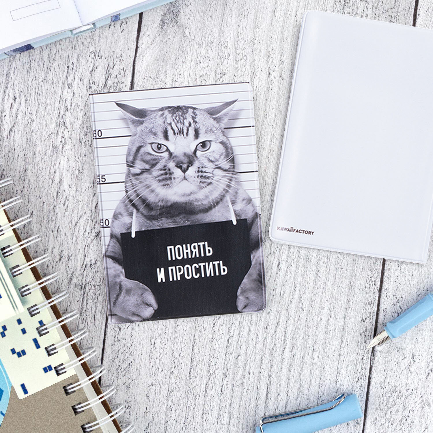 Обложка для автодокументов Kawaii Factory, светло-серый интересное: