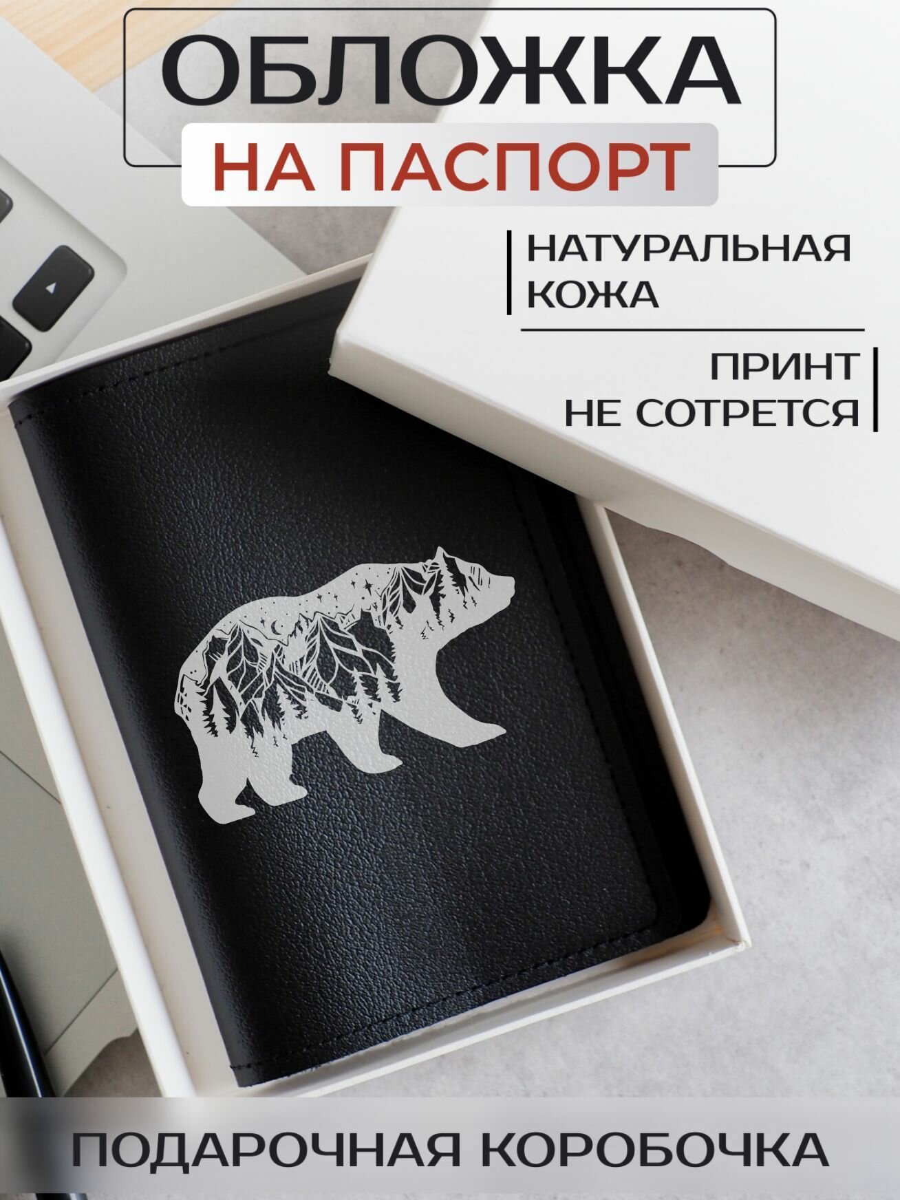 Обложка для паспорта RUSSIAN HandMade, медведь интересное: