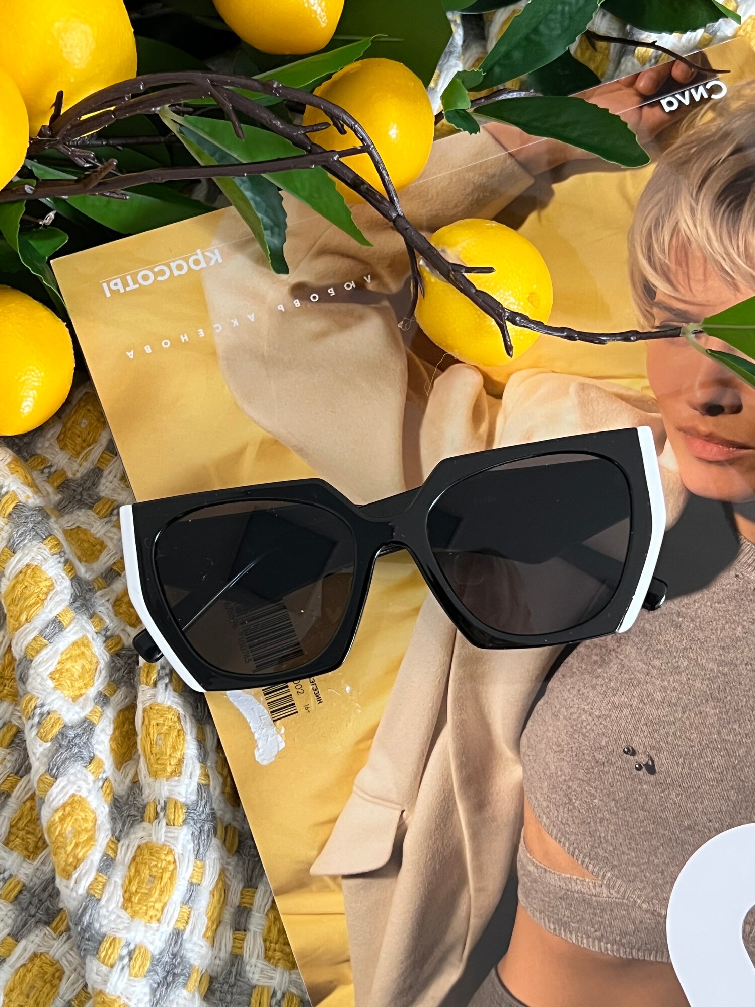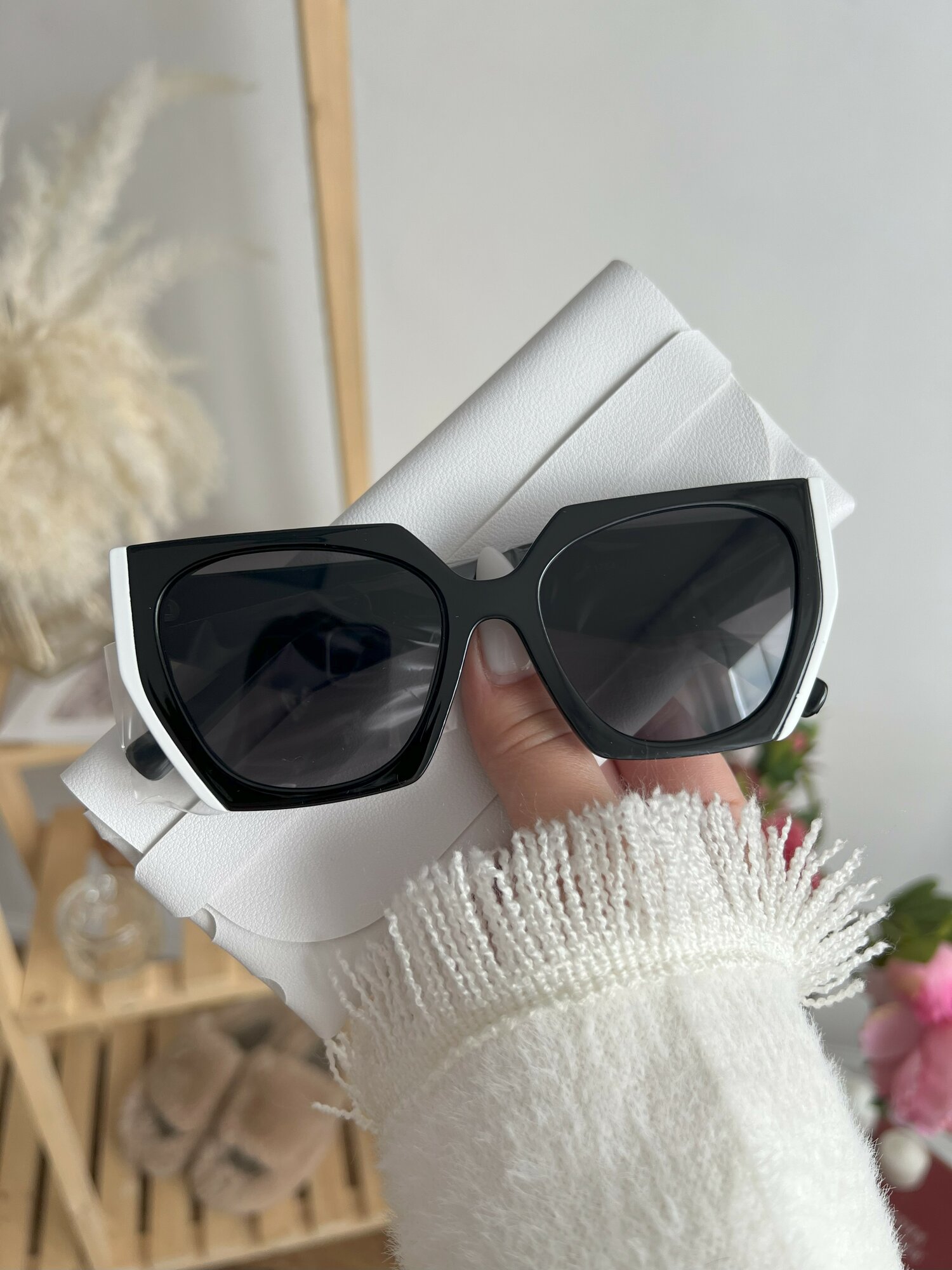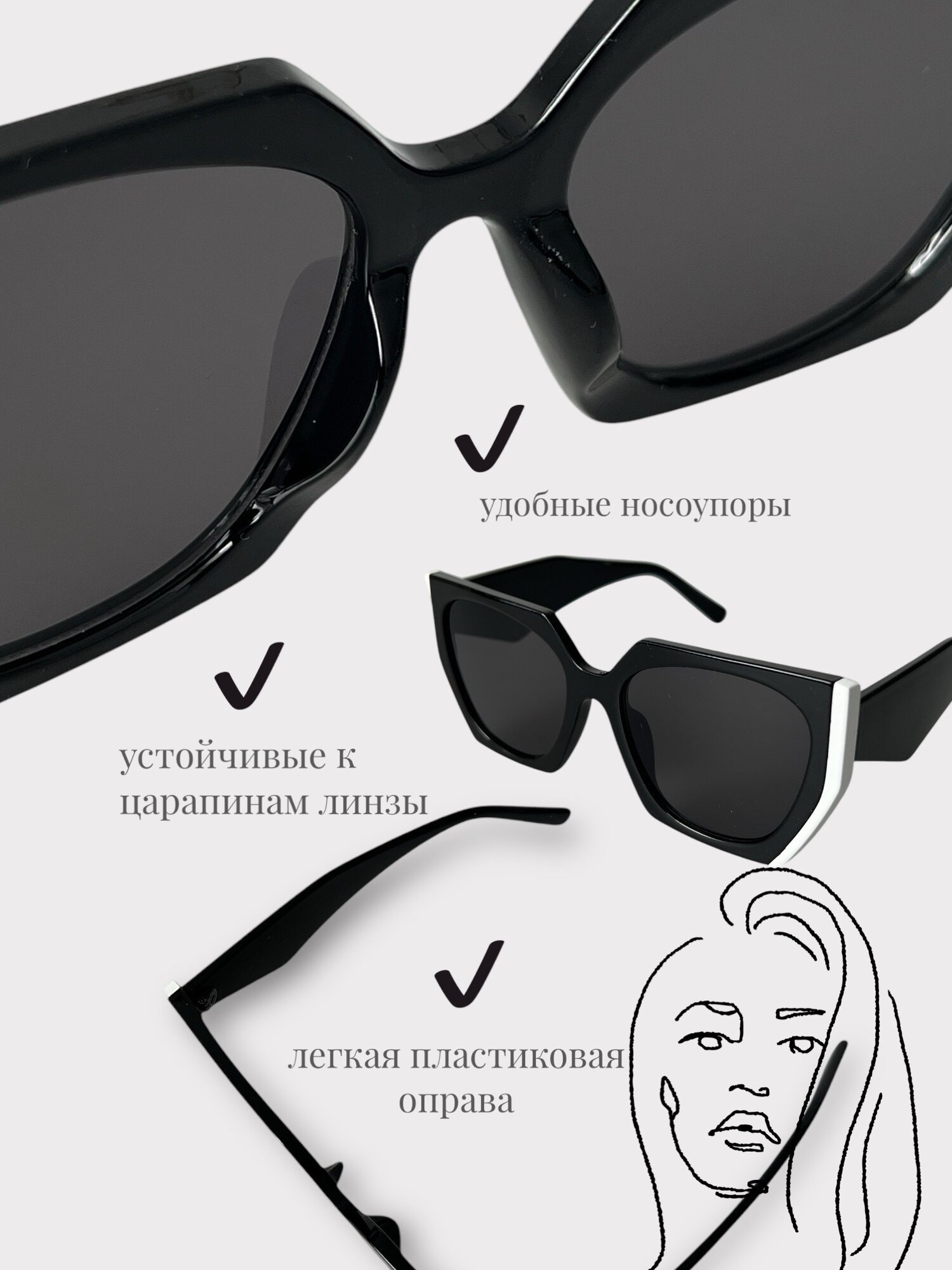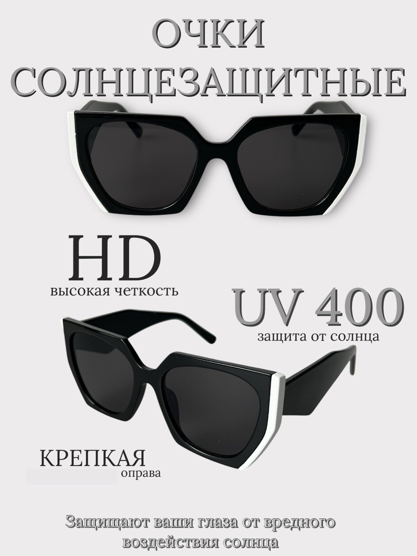 Солнцезащитные очки YuliyaMoon, черный/белый интересное: