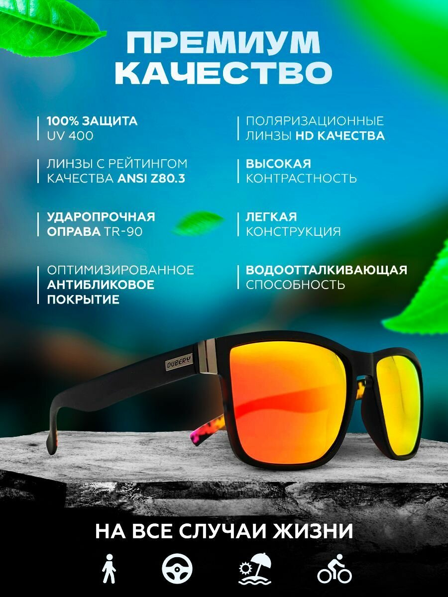 Солнцезащитные очки DUBERY, мультиколор, черный, серый, хаки, красный, зеленый, оранжевый