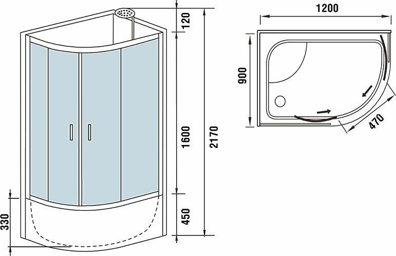 Душевая кабина WeltWasser HALLE 1201 R 1200х900х2170 мм