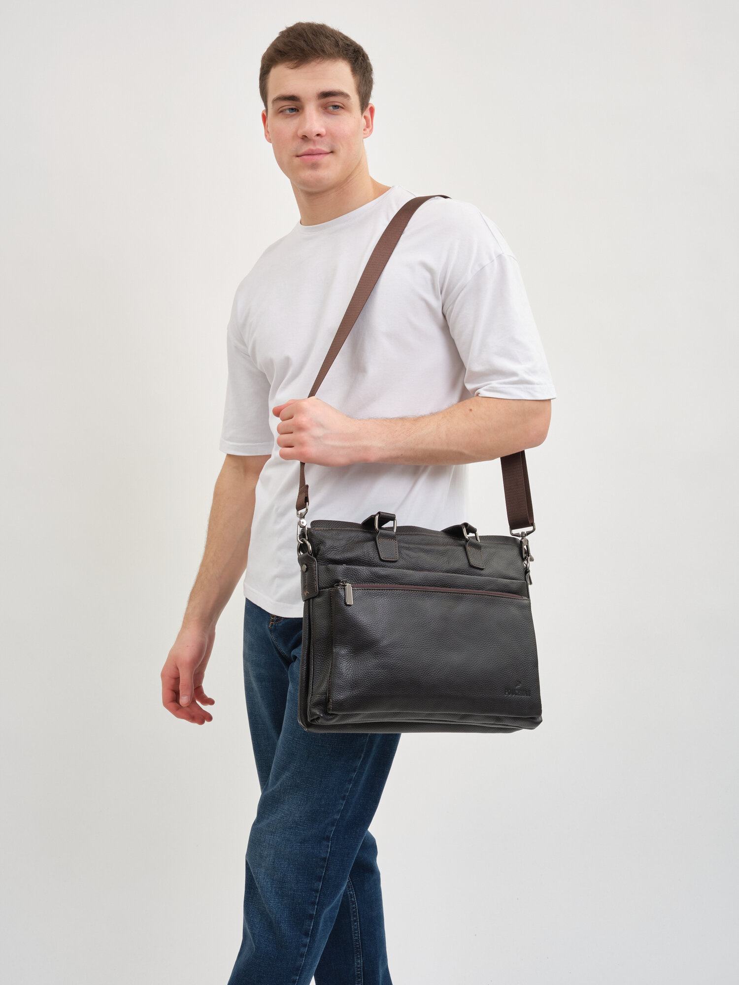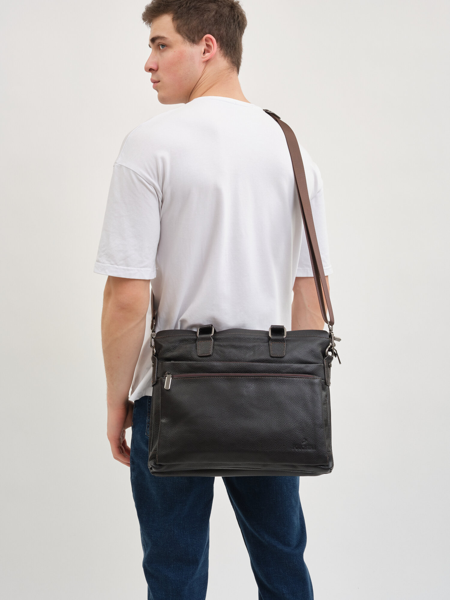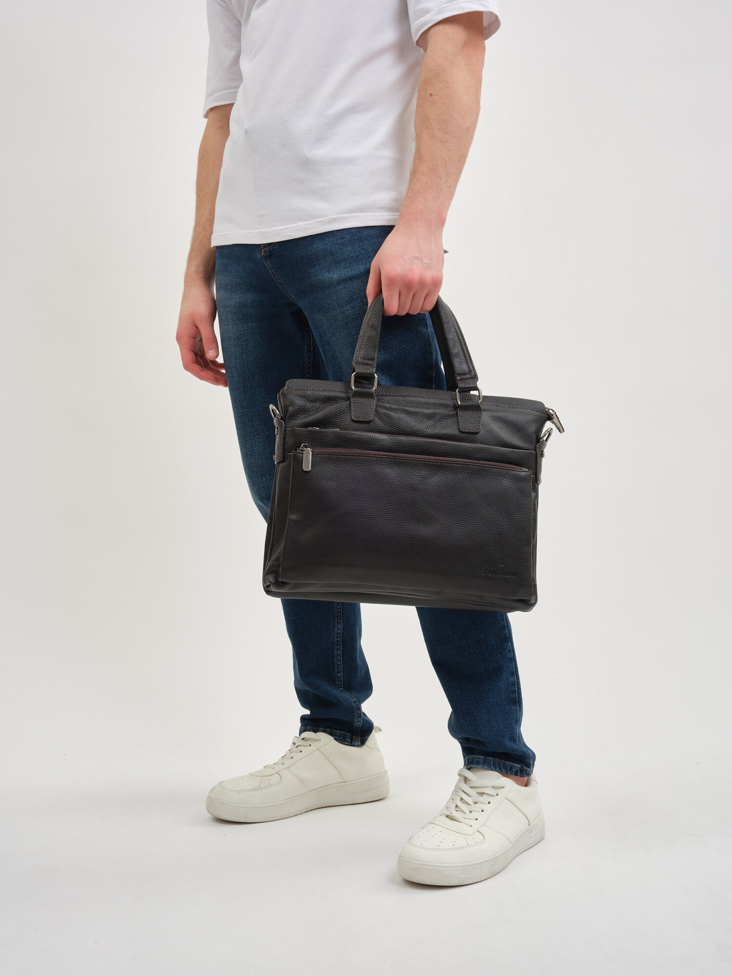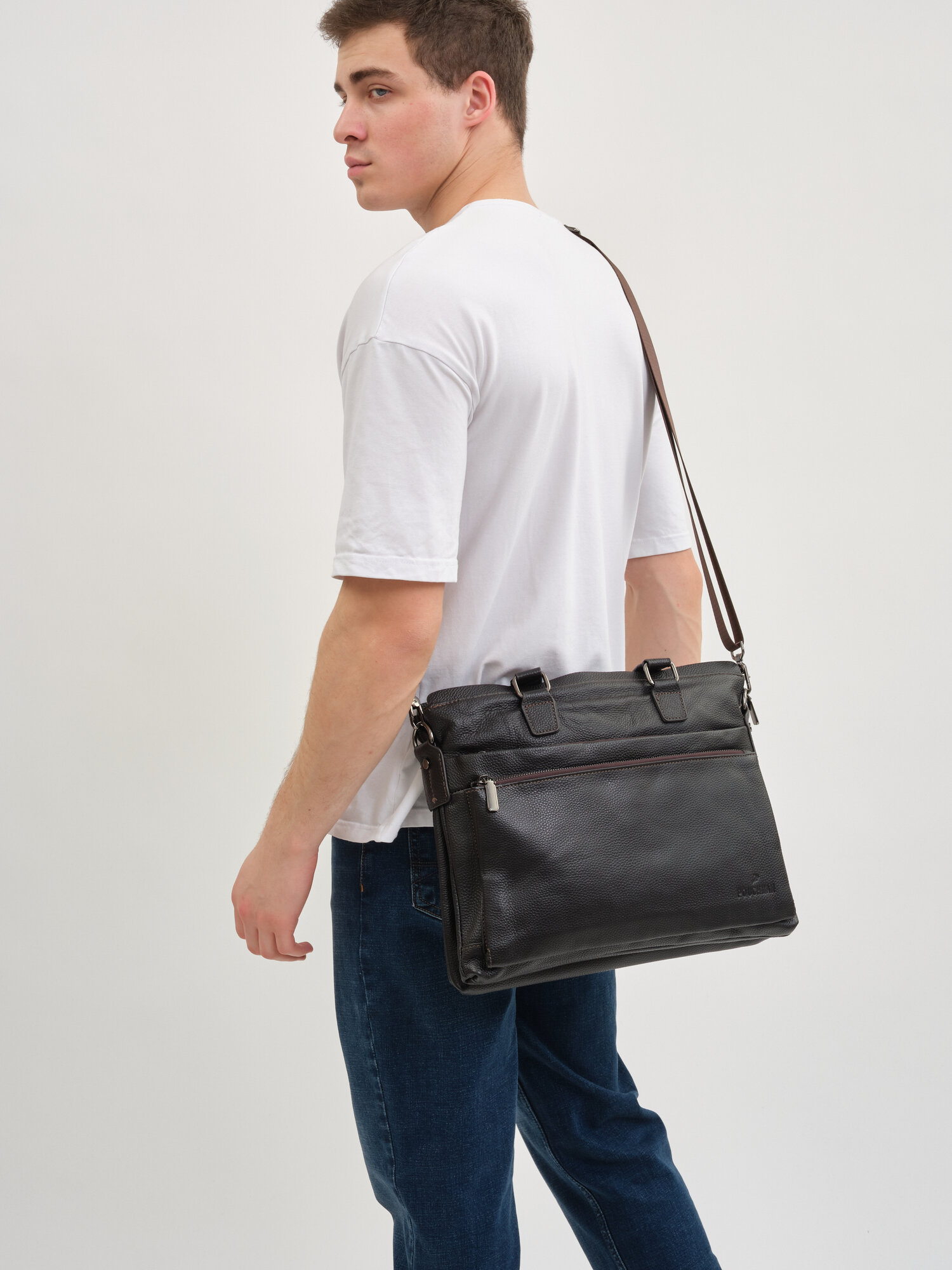 Портфель POUCHMAN, фактура гладкая, темно-коричневый интересное: