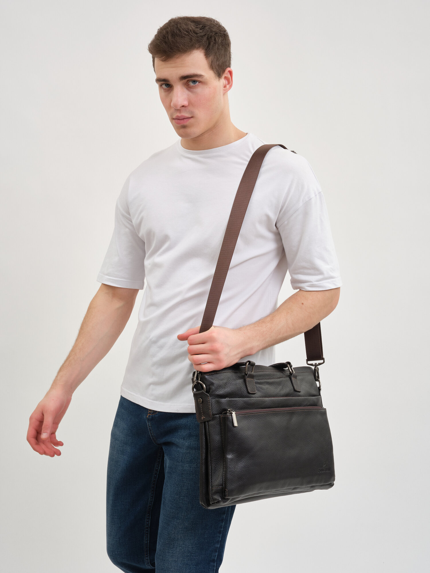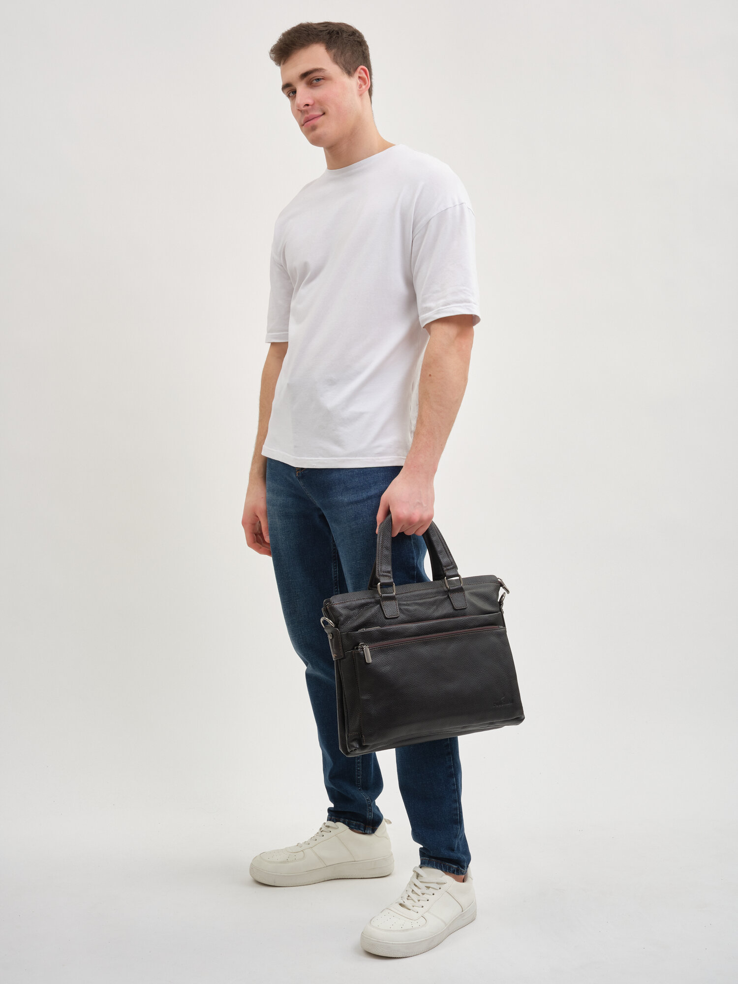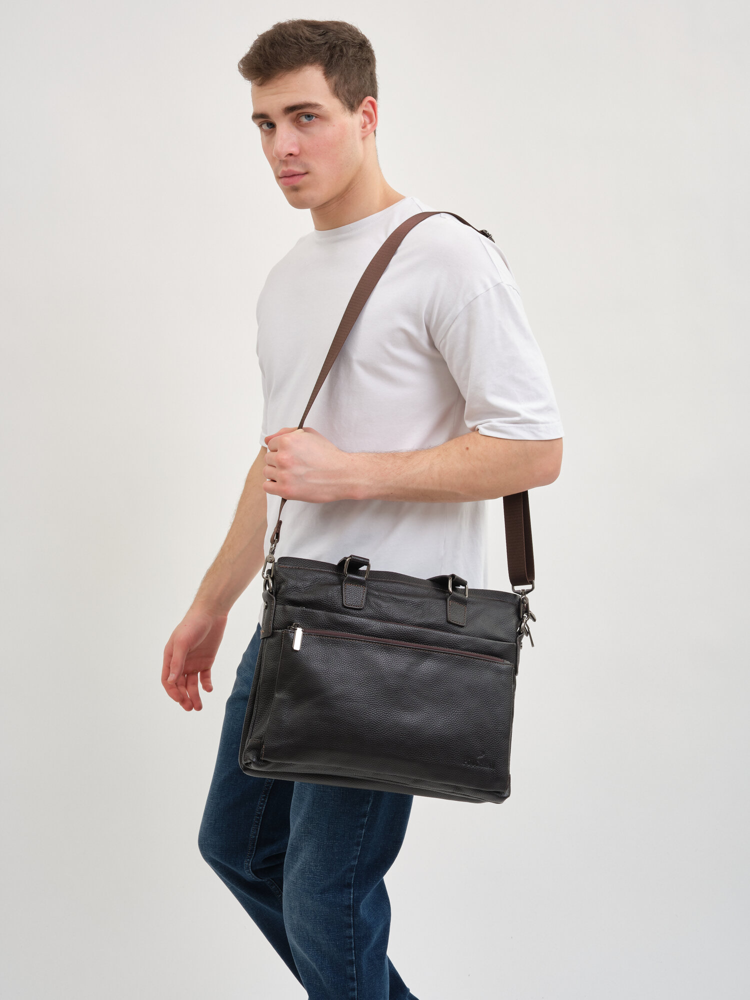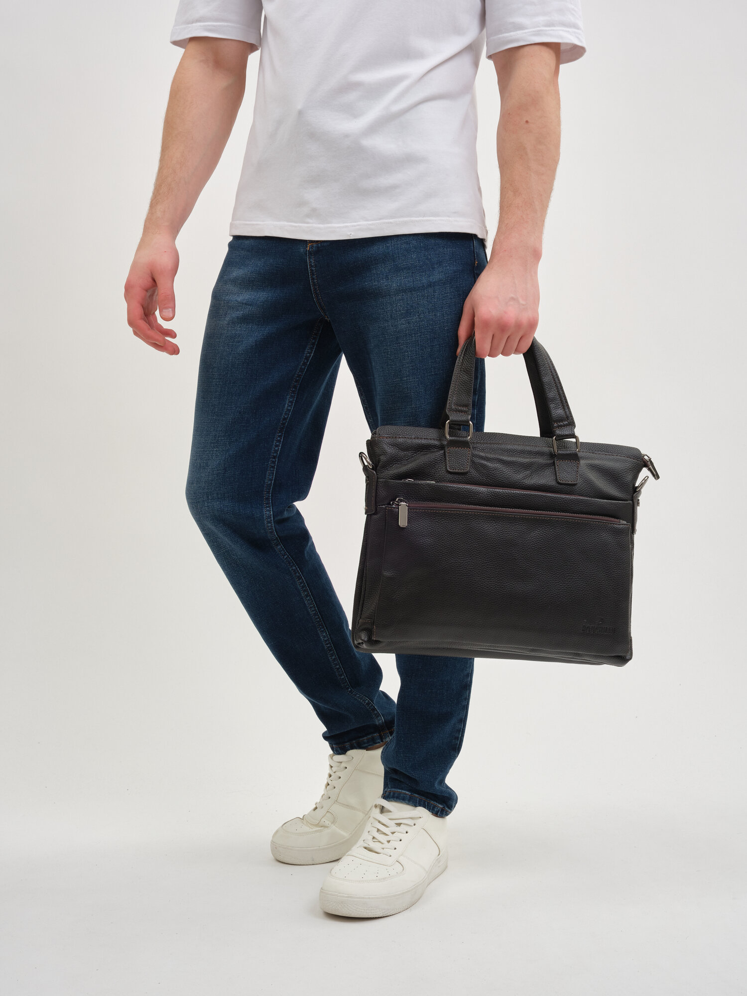 Портфель POUCHMAN, фактура гладкая, темно-коричневый интересное: