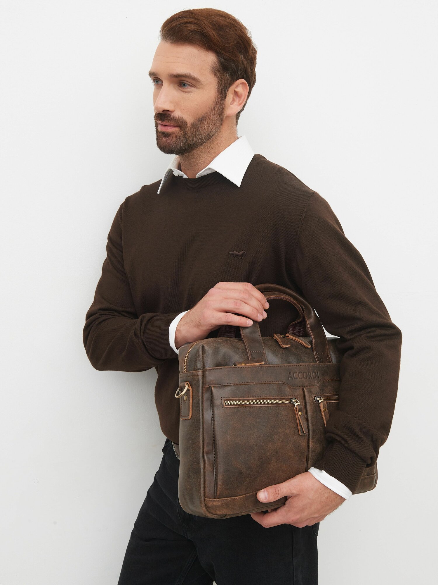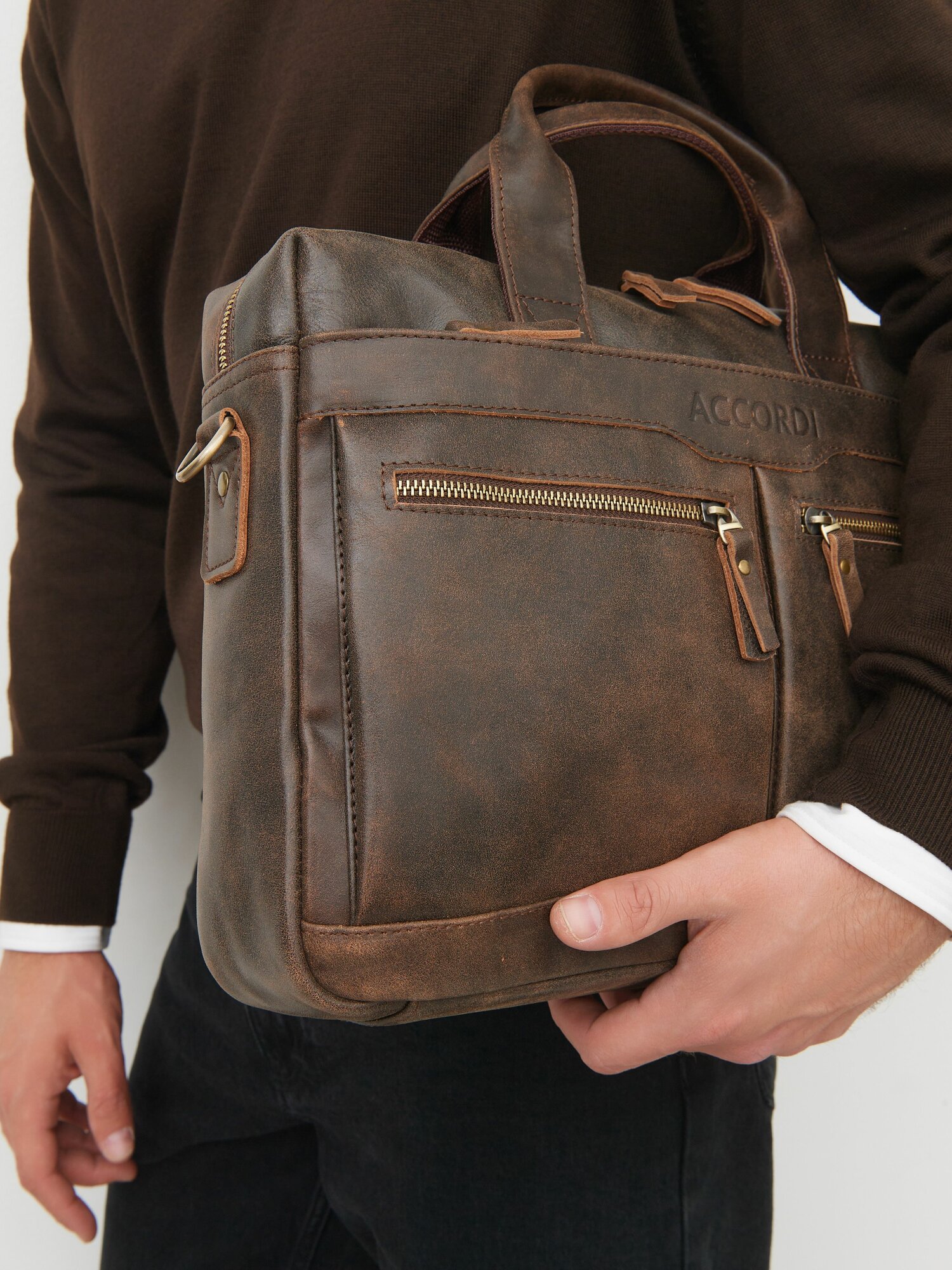 Портфель Accordi, фактура гладкая, темно-коричневый интересное: