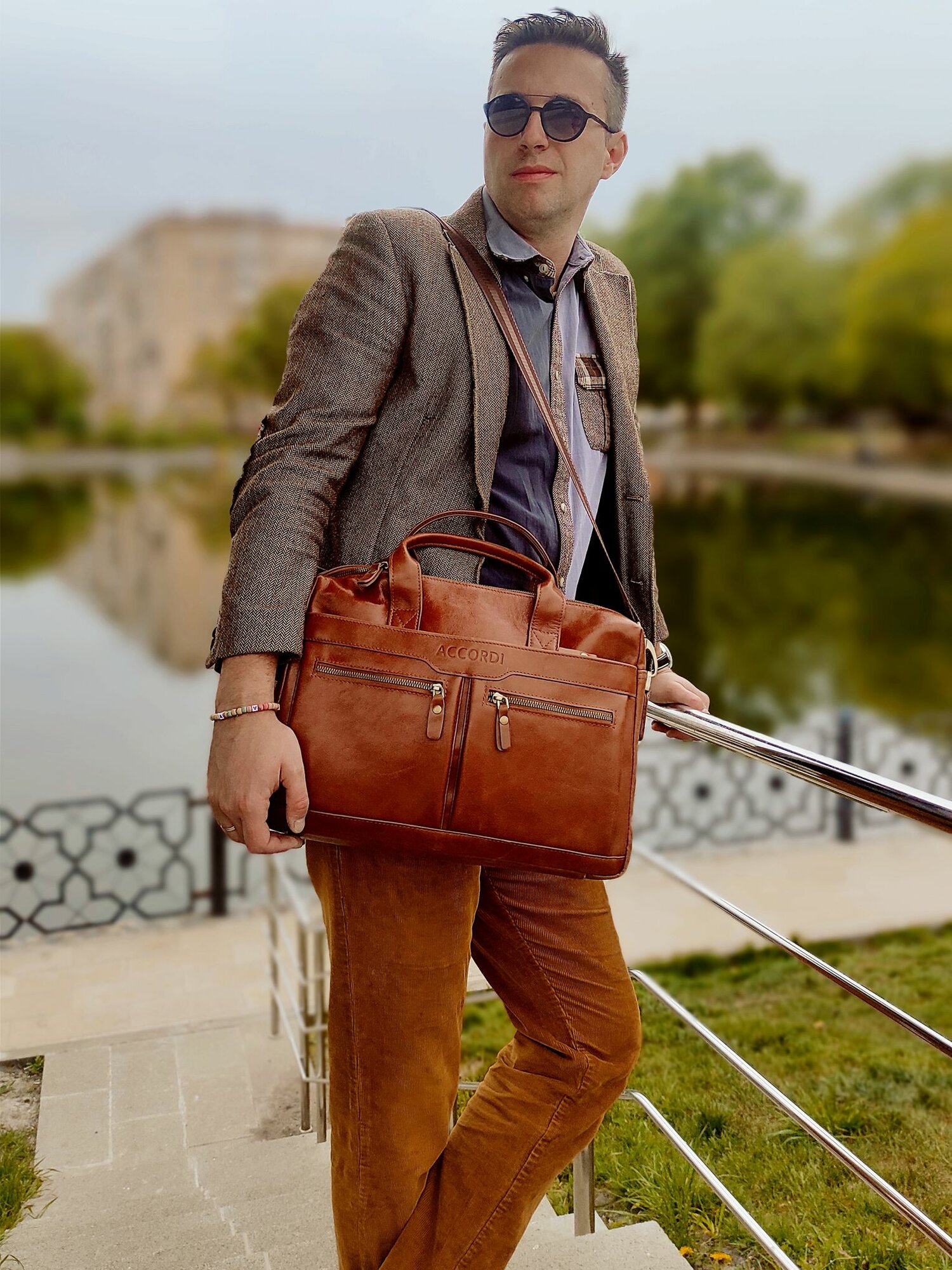 Портфель Accordi, фактура гладкая, темно-коричневый