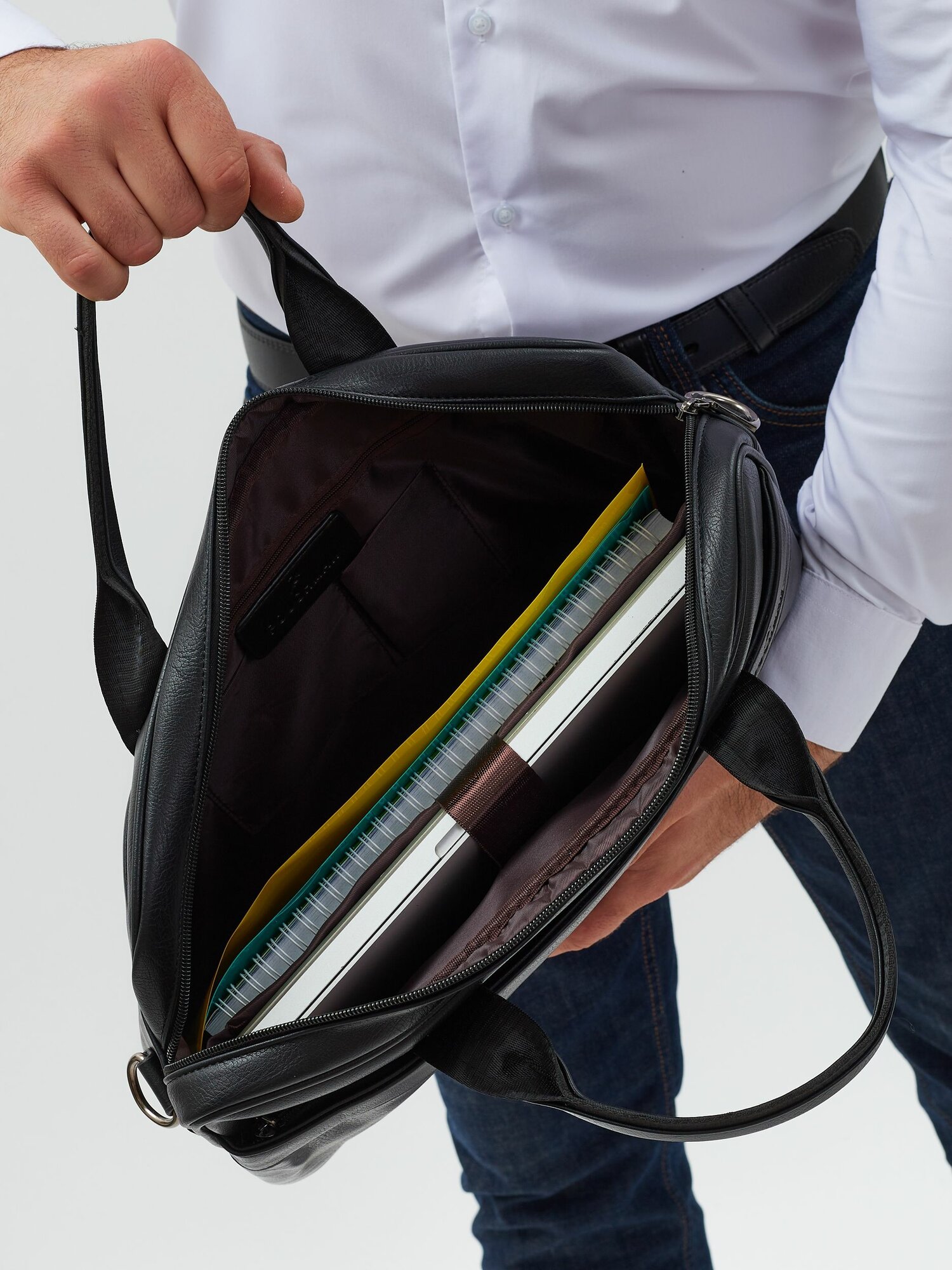 Портфель POUCHMAN, фактура гладкая, черный 4 интересное: