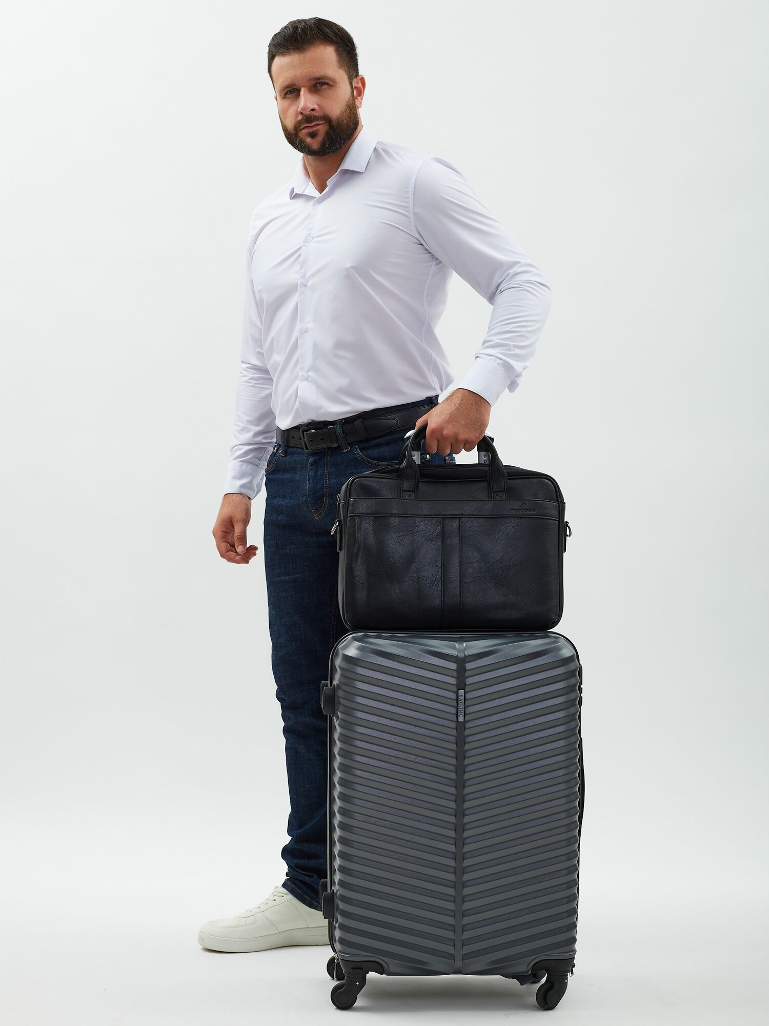 Дорожная сумка с ремнем на ручку чемодана Рион+ (RION+) / ручная кладь для самолета, поезда / саквояж для города, R240