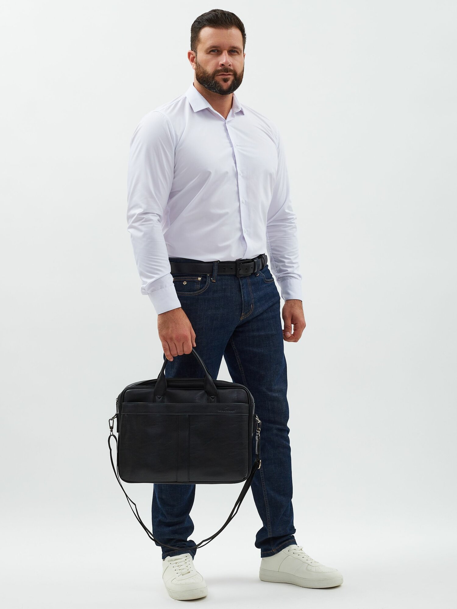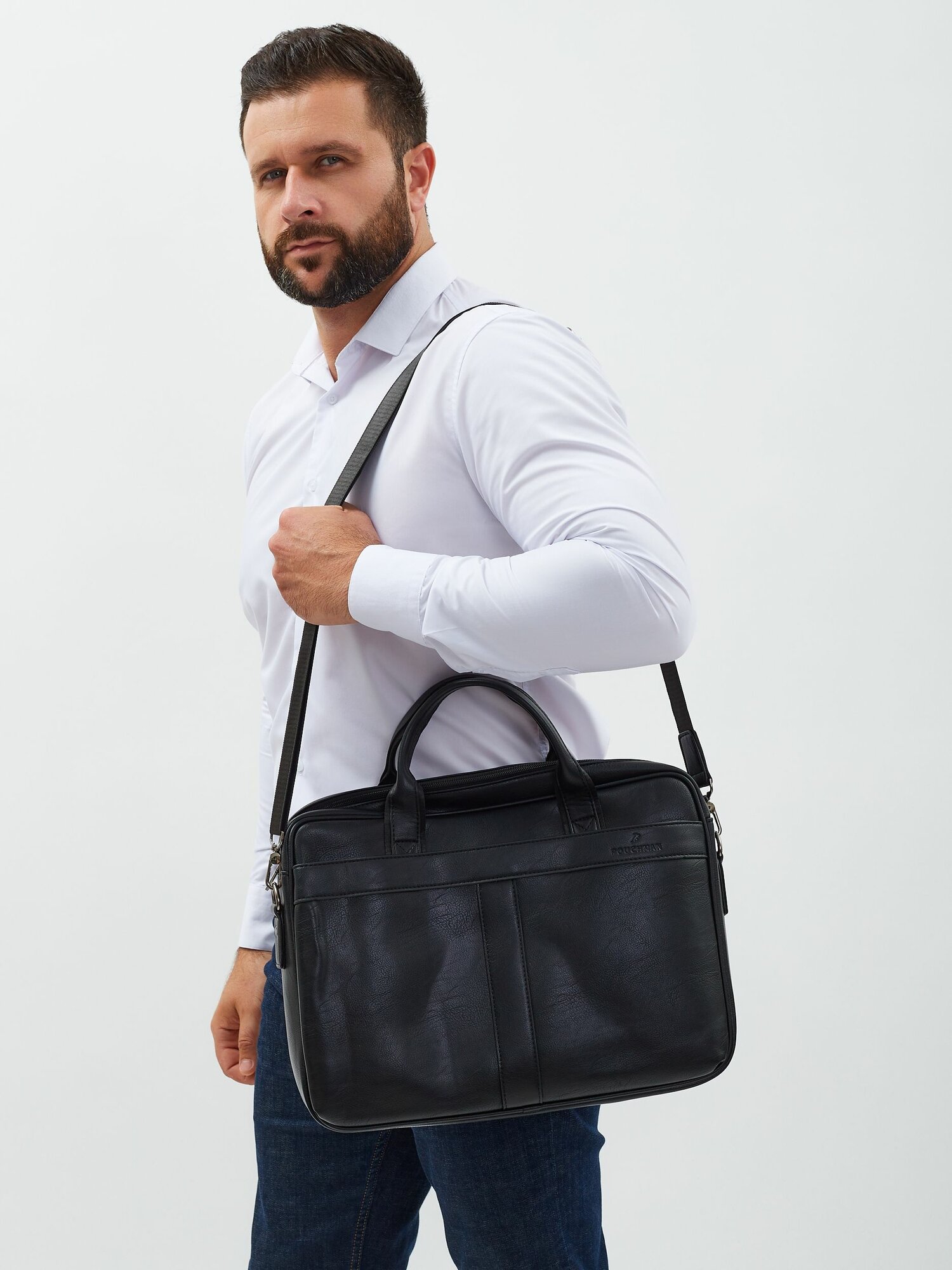 Портфель POUCHMAN, фактура гладкая, черный 5