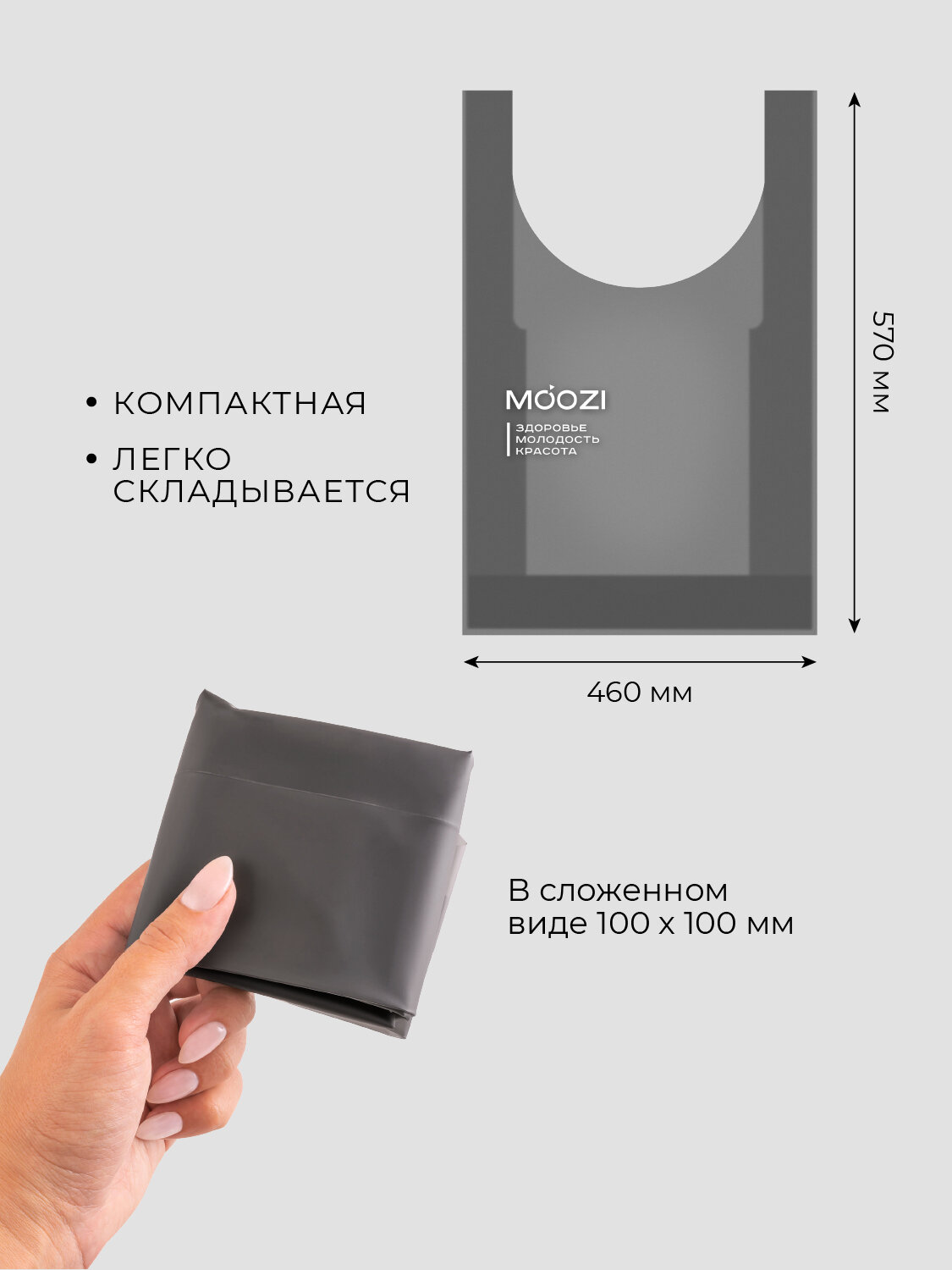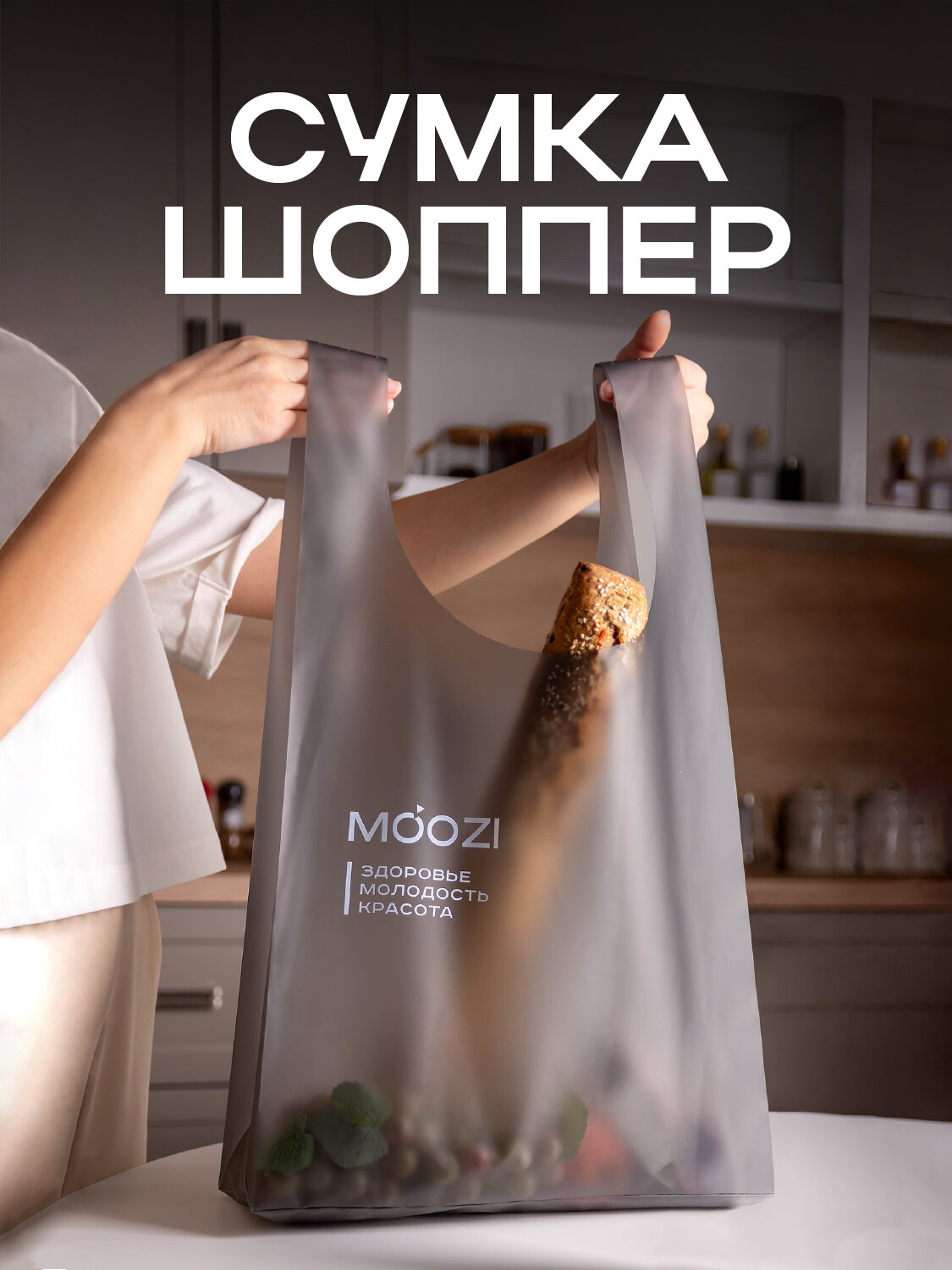 Сумка шоппер MOOZI, фактура гладкая, матовая, серый интересное: