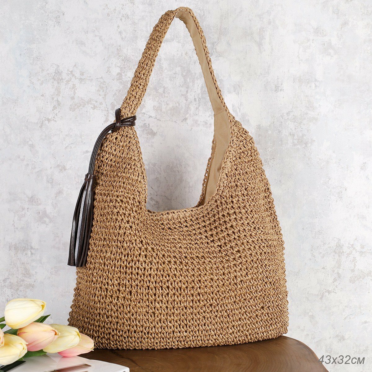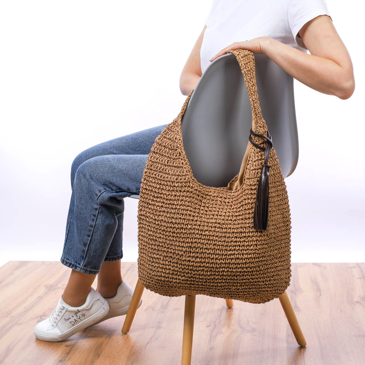 Сумка хобо Галеон, фактура плетеная, коричневый интересное: