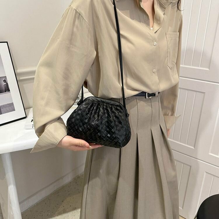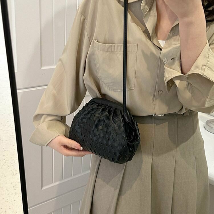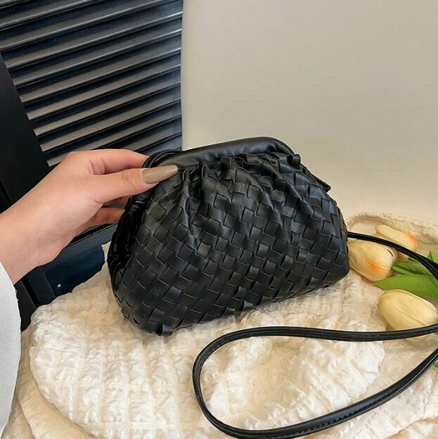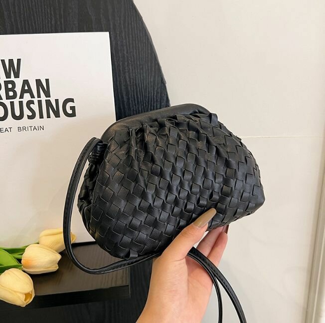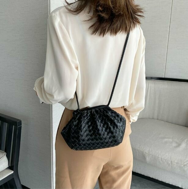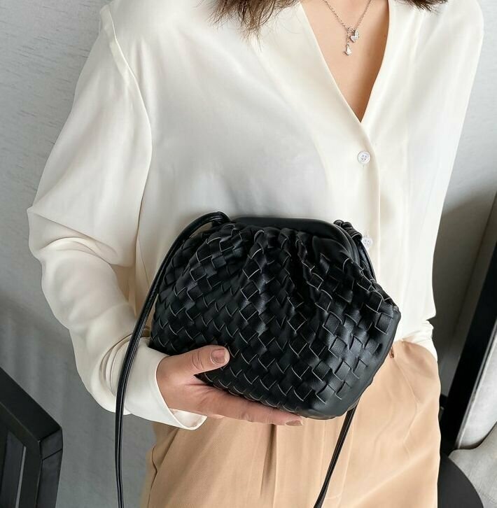 Сумка мессенджер Bottoncini, фактура плетеная, черный интересное: