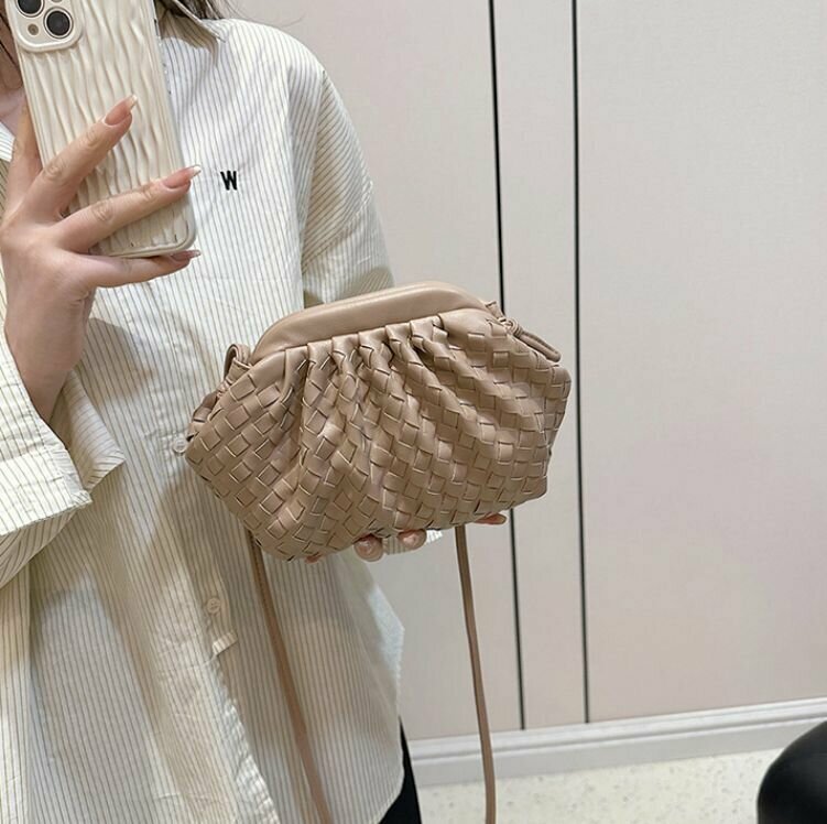 Сумка мессенджер Bottoncini, фактура плетеная, бежевый интересное: