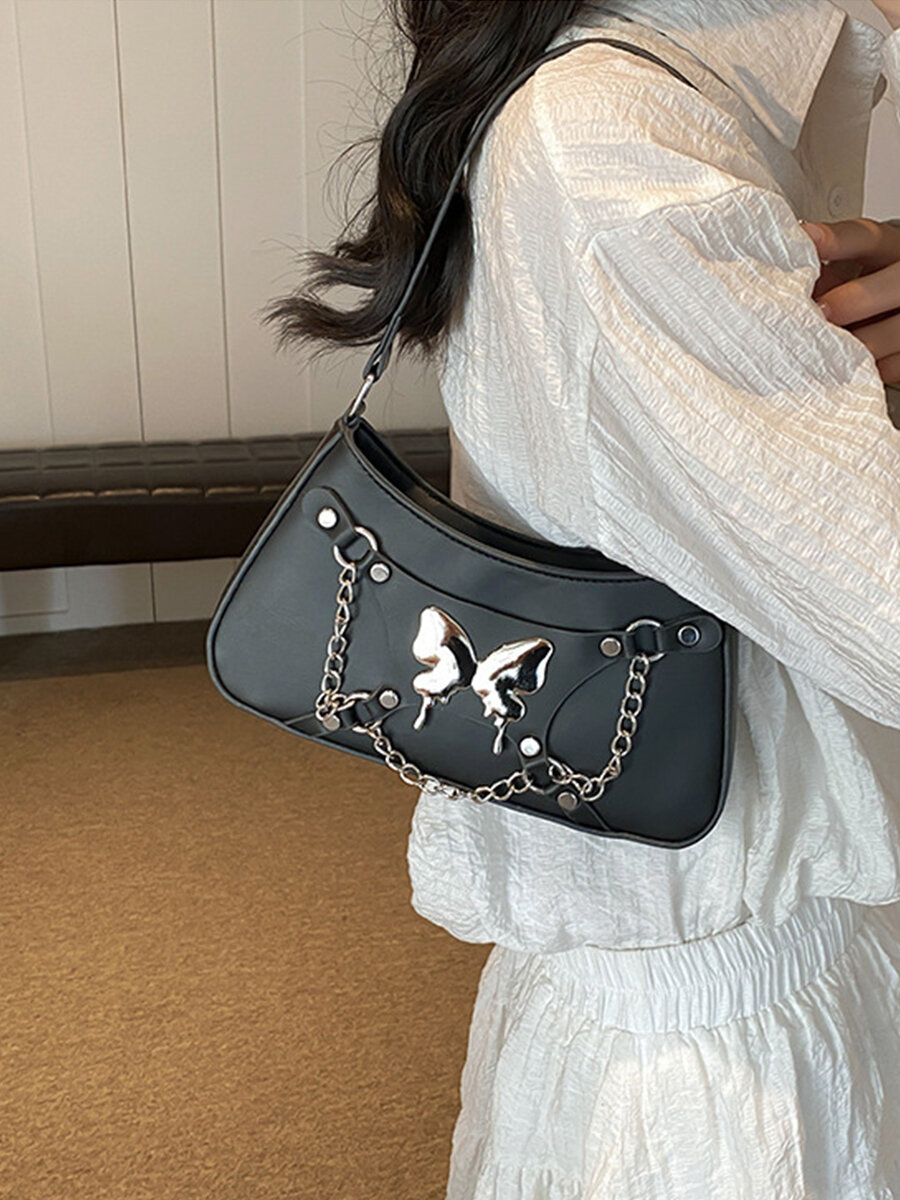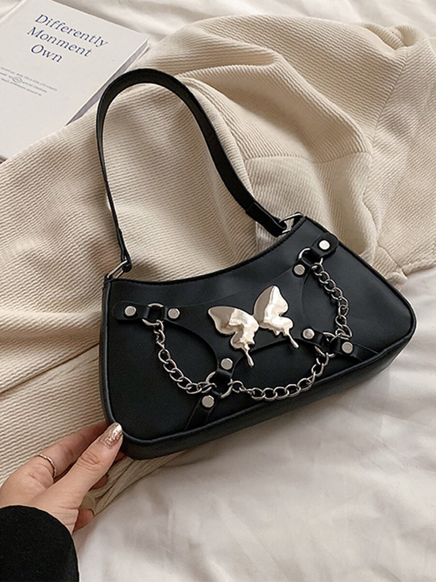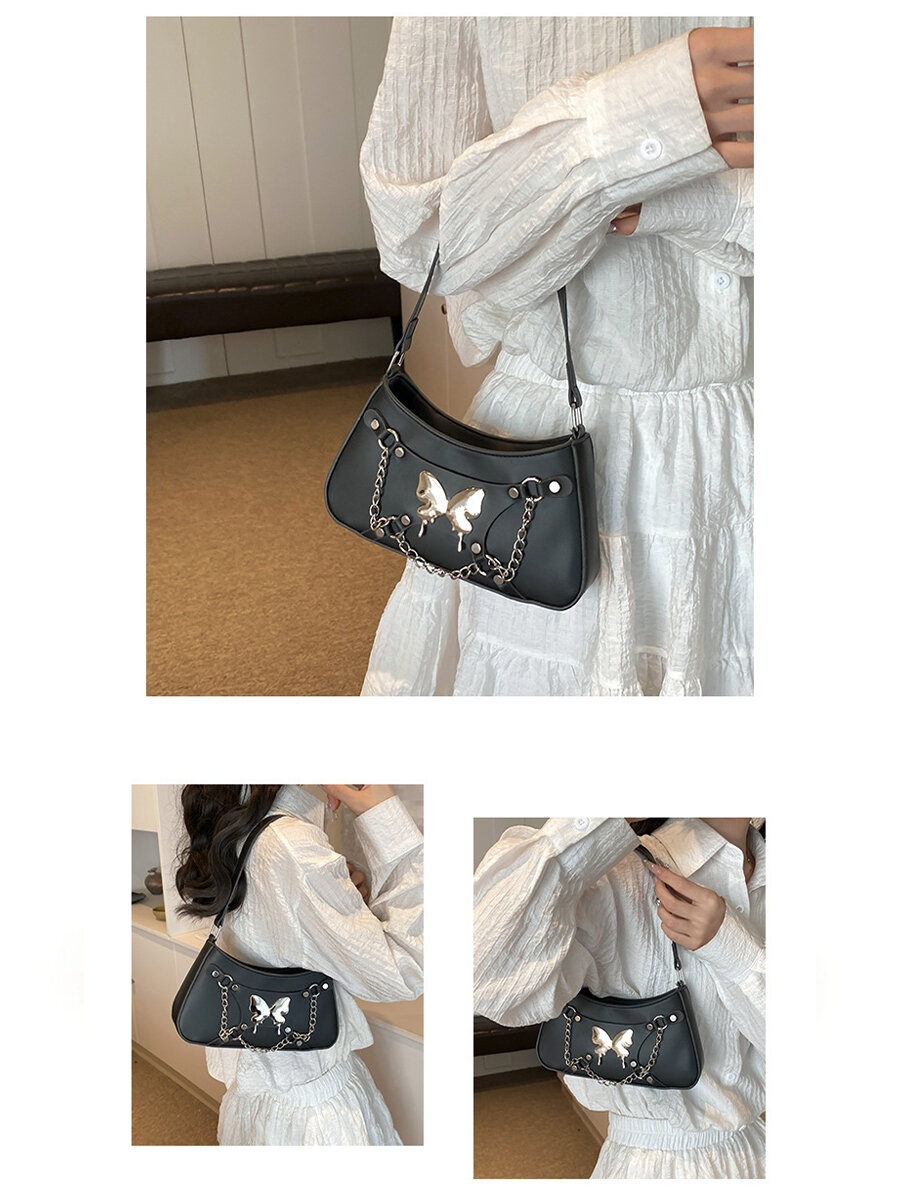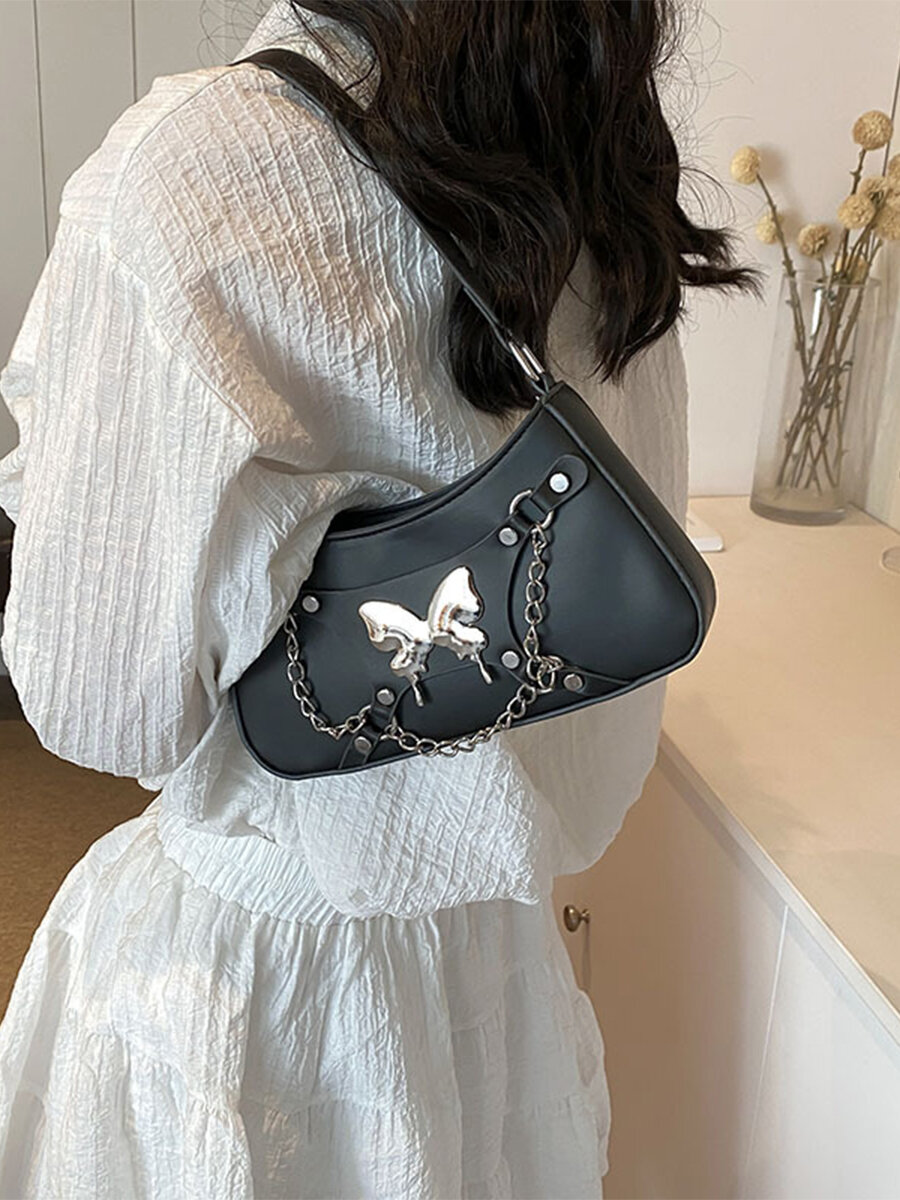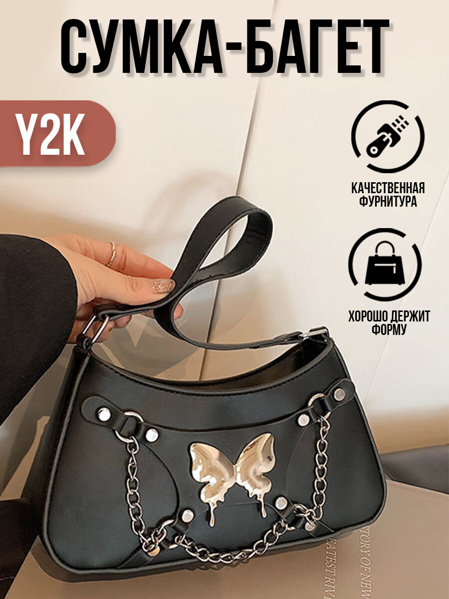 Сумка багет Caroline Jewelry Черная, фактура гладкая, черный интересное: