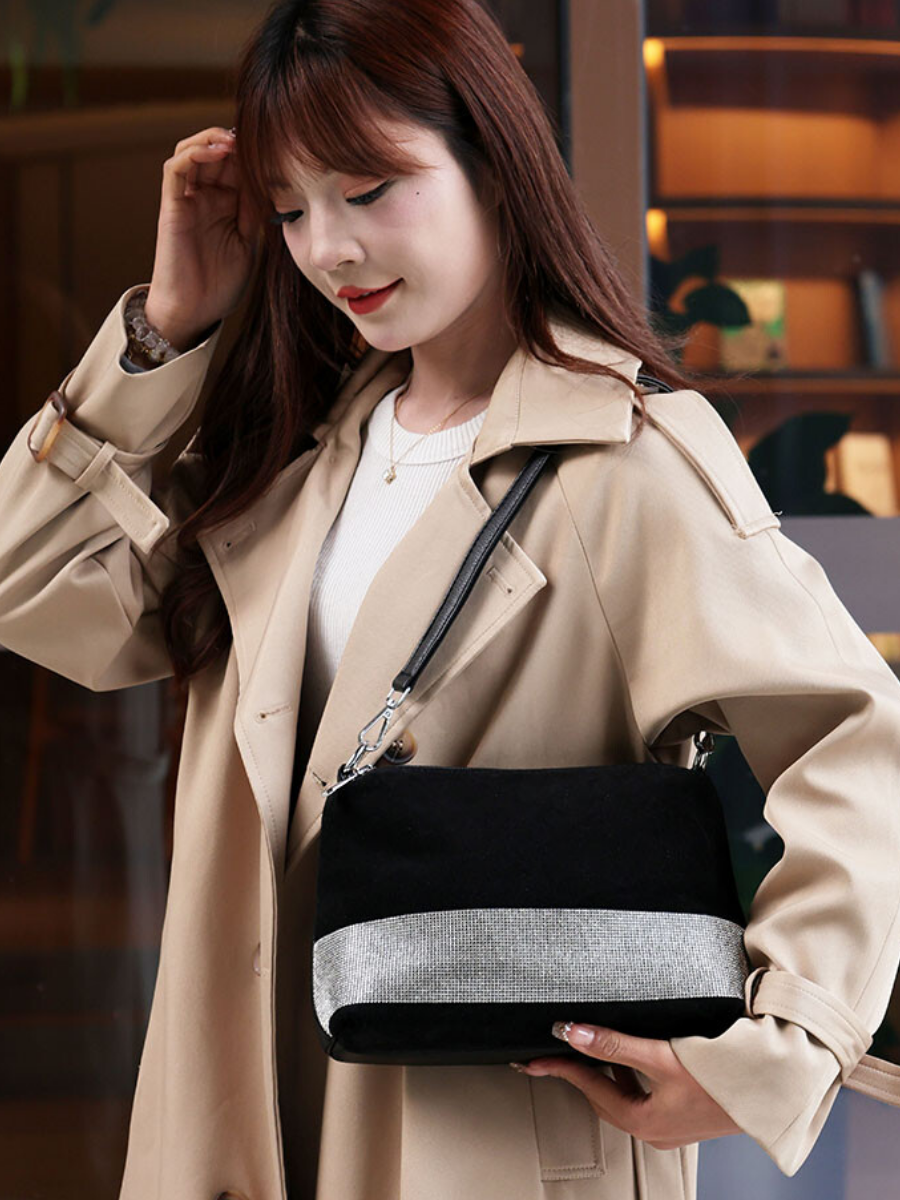 Купить Сумка мессенджер POSSESS, фактура бархатистая, черный