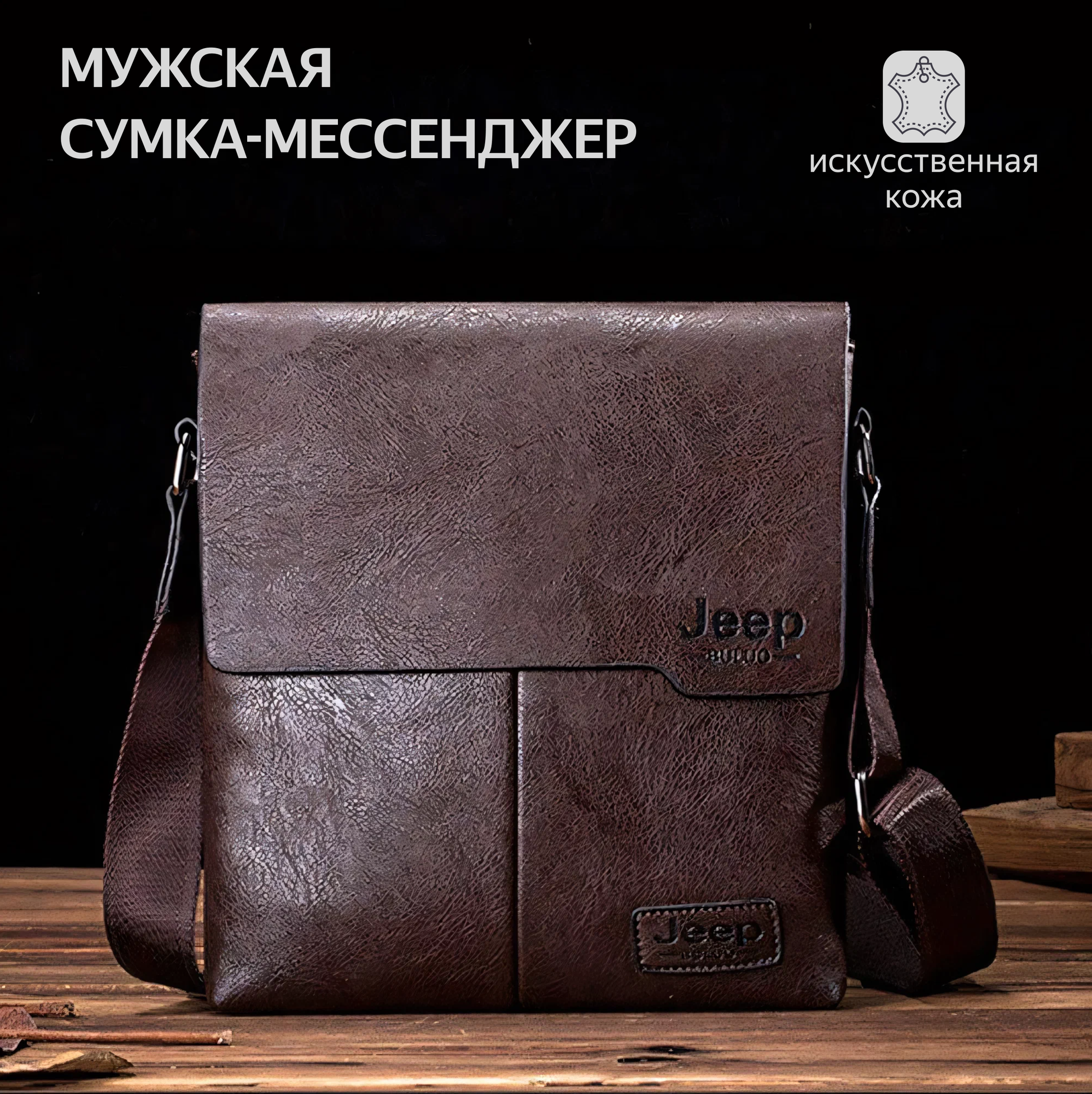 Сумка мессенджер Jeep Buluo, фактура рельефная, темно-коричневый интересное: