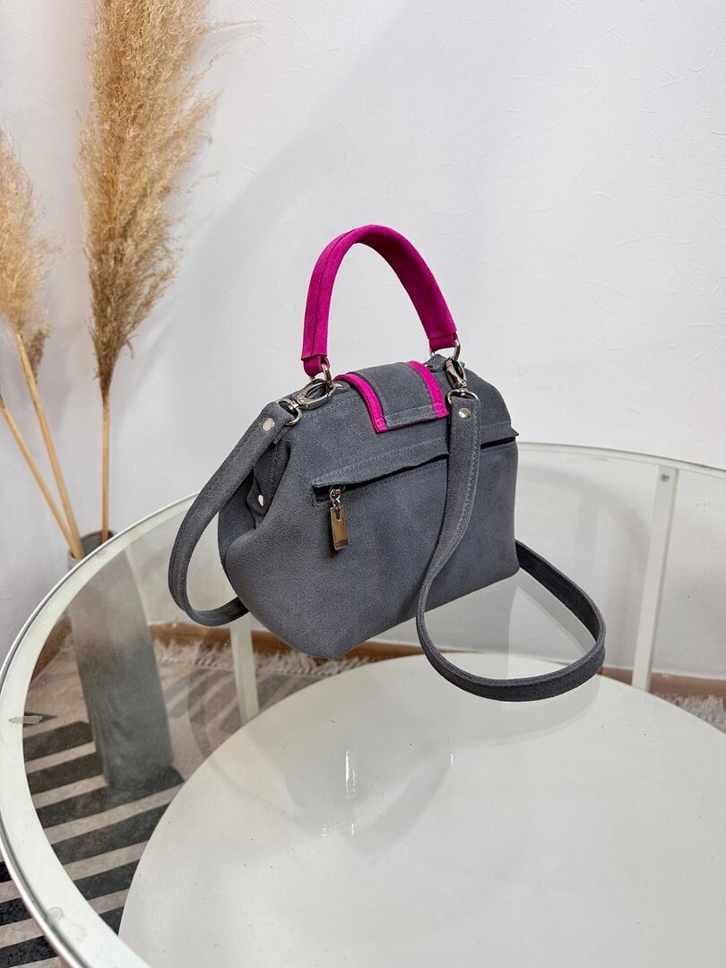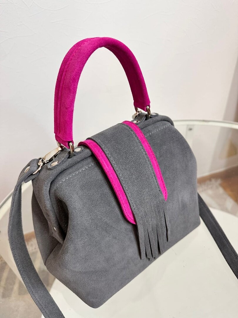 Сумка саквояж Shapely, фактура бархатистая, темно-серая интересное: