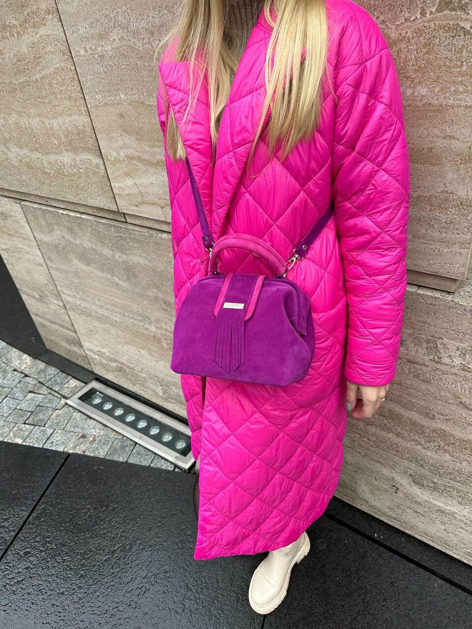 Сумка саквояж Shapely, фактура бархатистая, фиолетовая интересное: