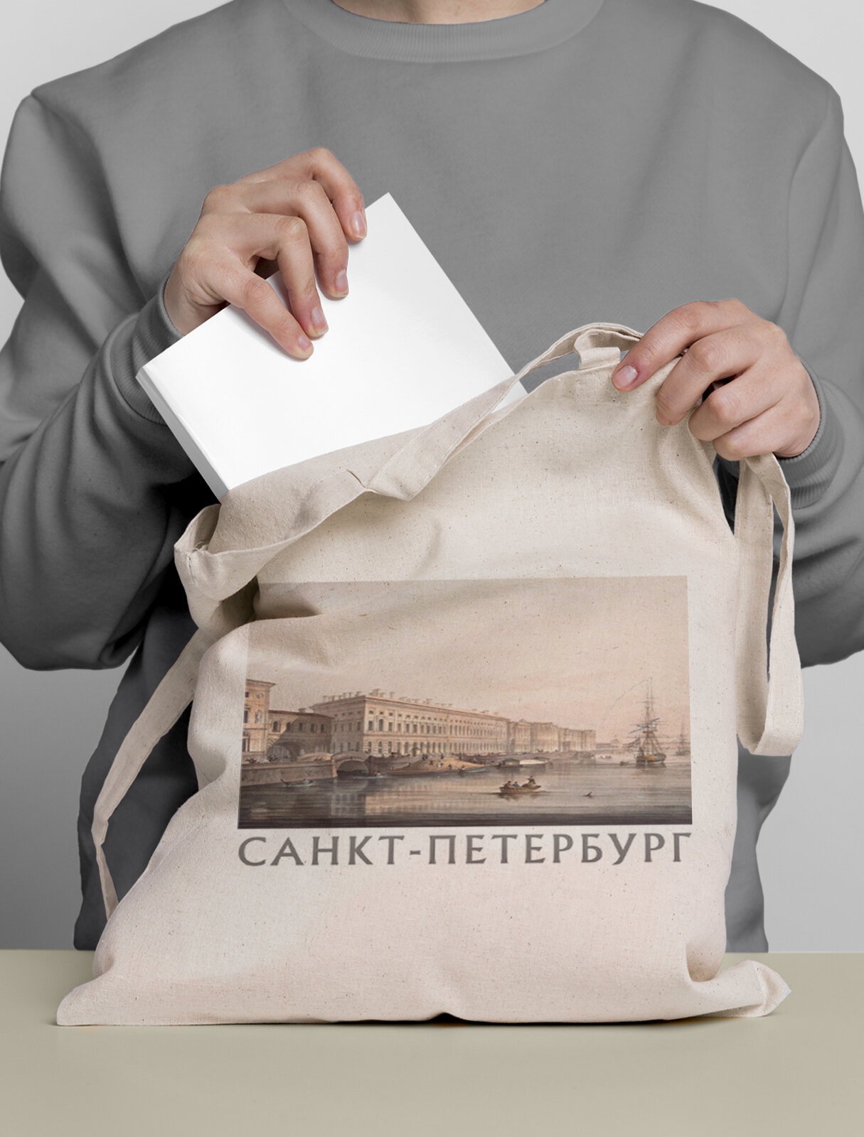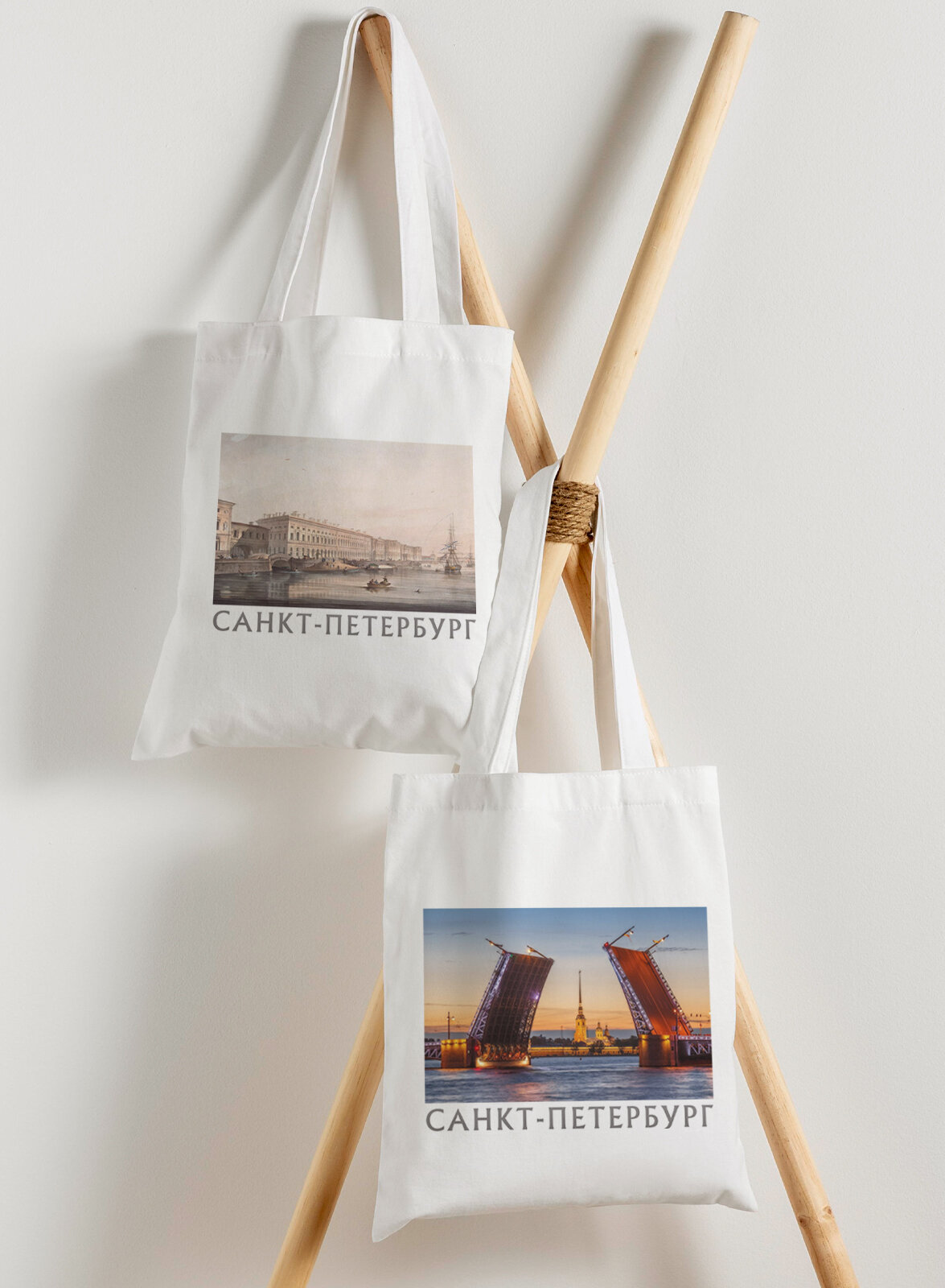 Сумка шоппер Gerasim Комплект набор два шоппера с принтом "СанктПетербург", шопер авоська холщовая с рисунком в подарок, 2 шт, beige интересное:
