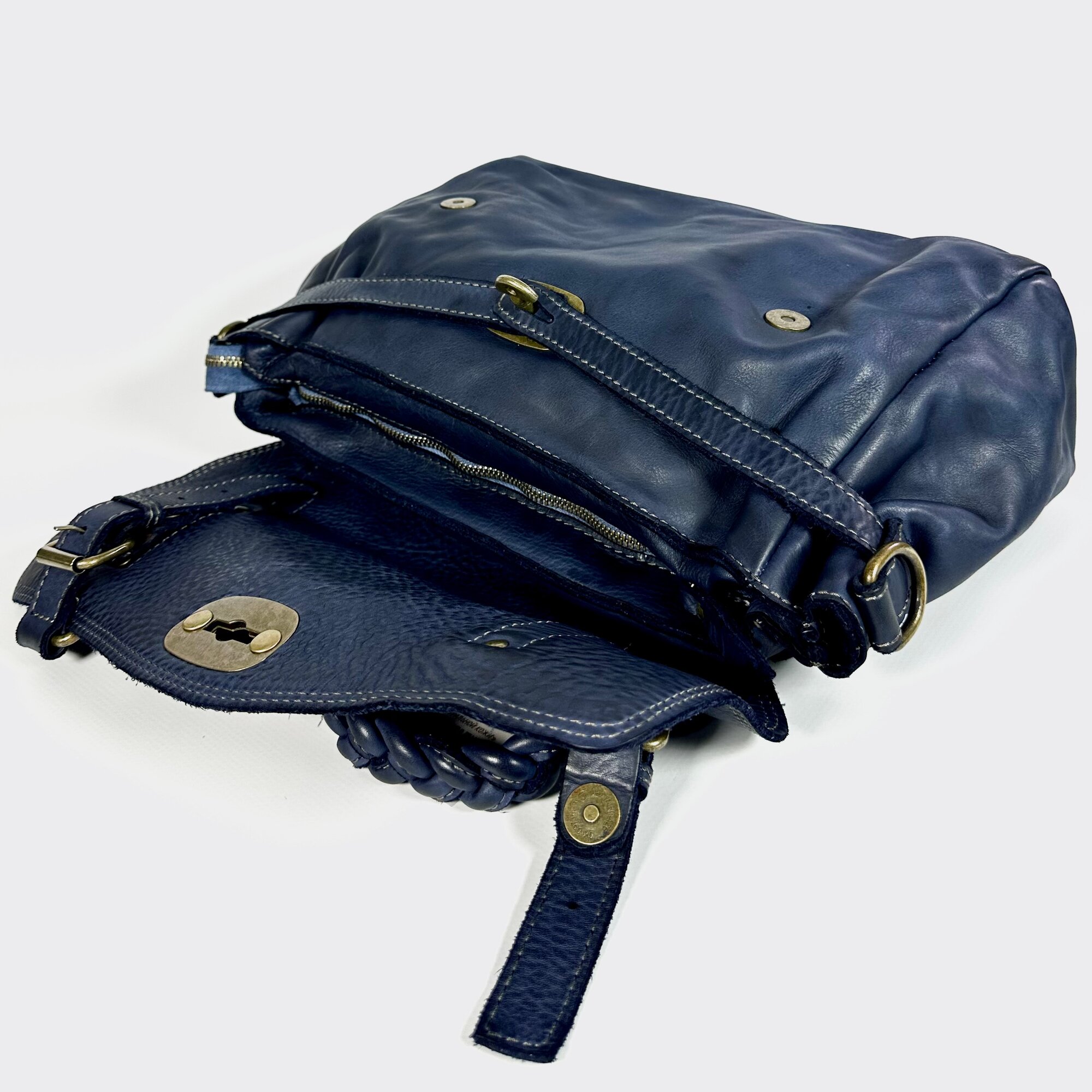 Купить Сумка сэтчел Vera Pelle, фактура матовая, темно-синий