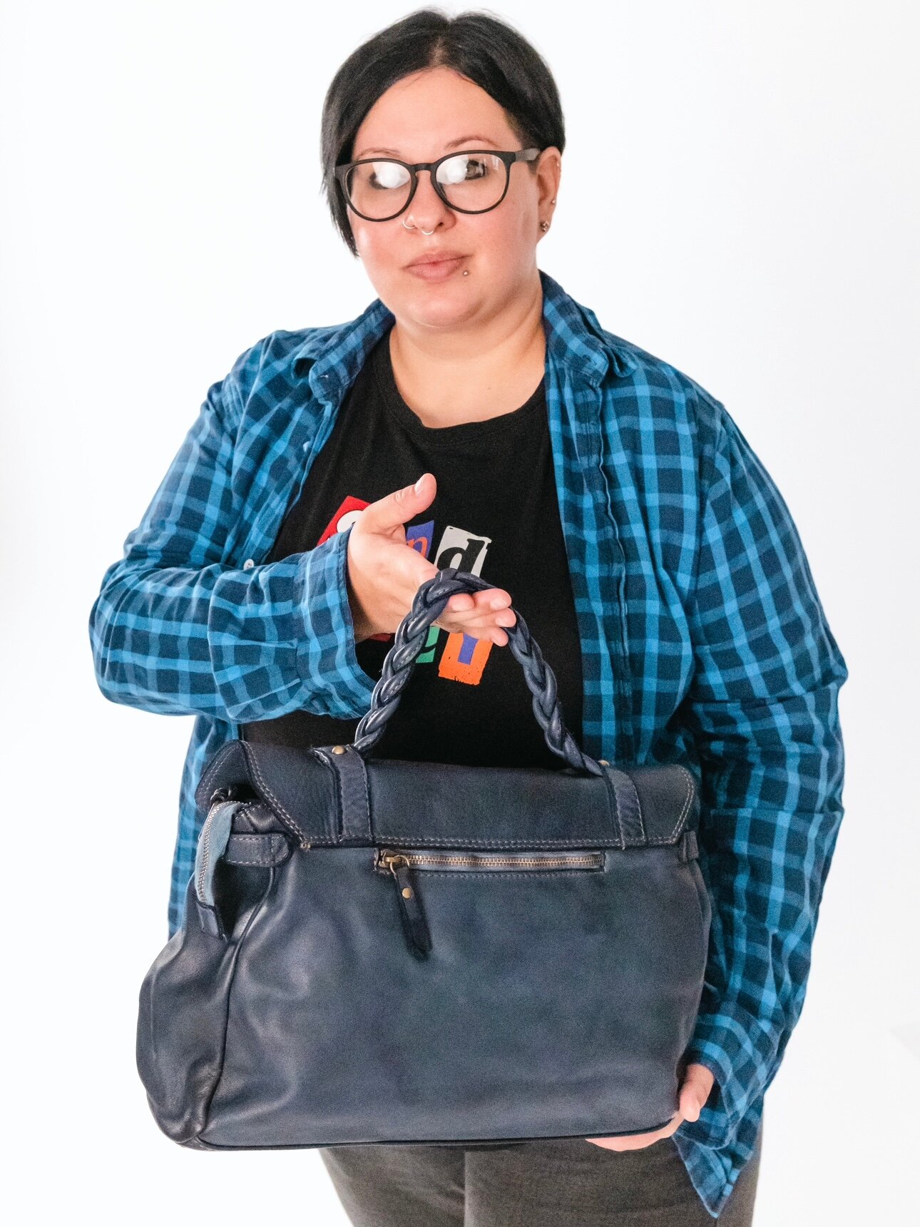 Сумка сэтчел Vera Pelle, фактура матовая, темно-синий интересное: