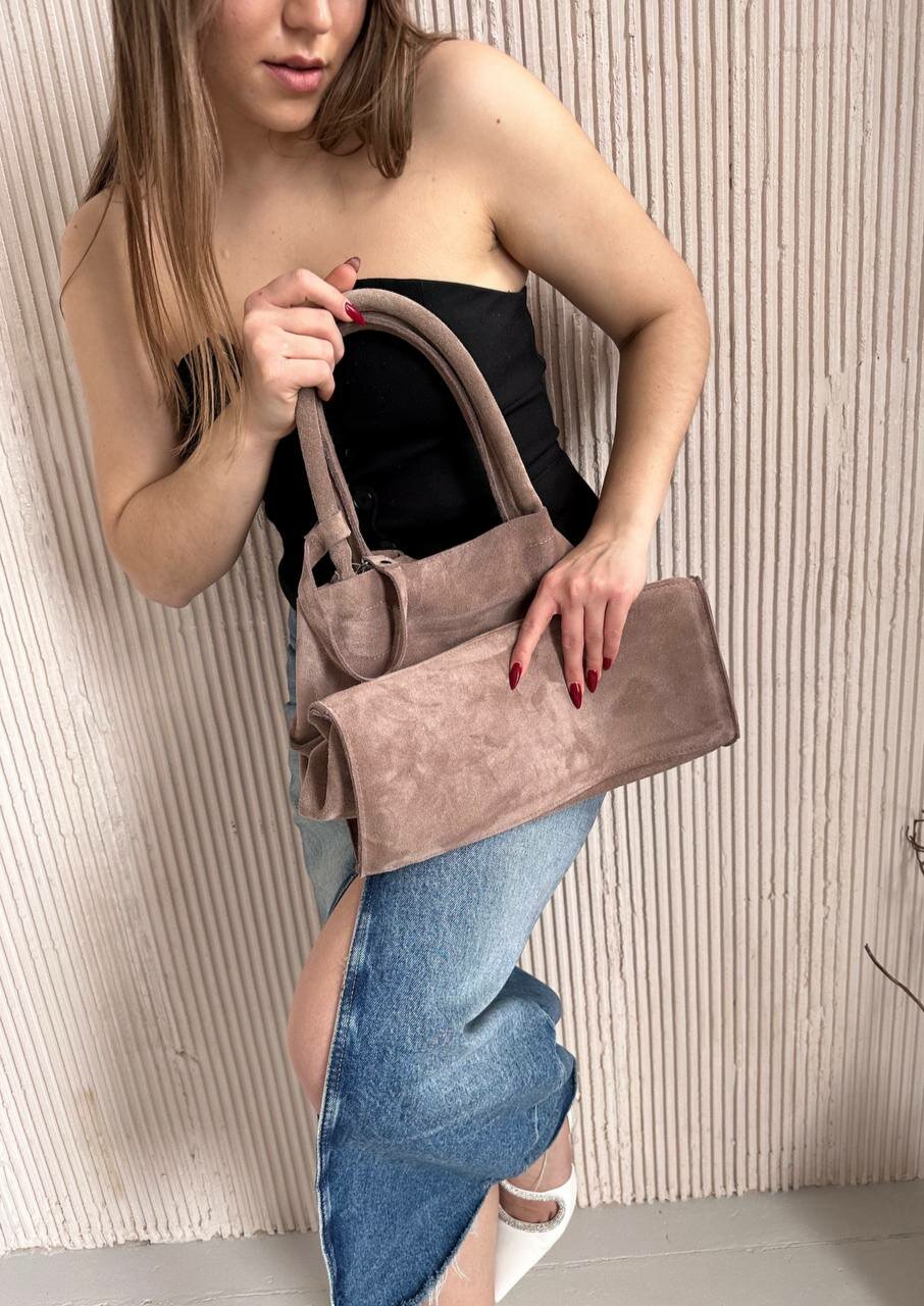 Сумка шоппер Shapely, фактура бархатистая, капуччино
