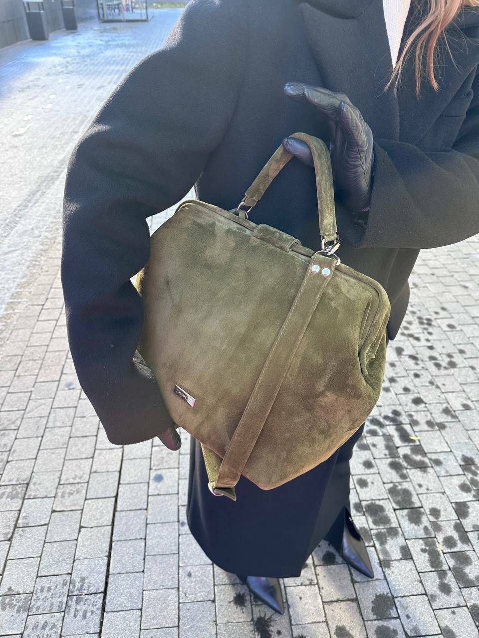 СохранитьСумка саквояж Shapely, фактура бархатистая, хаки интересное:
