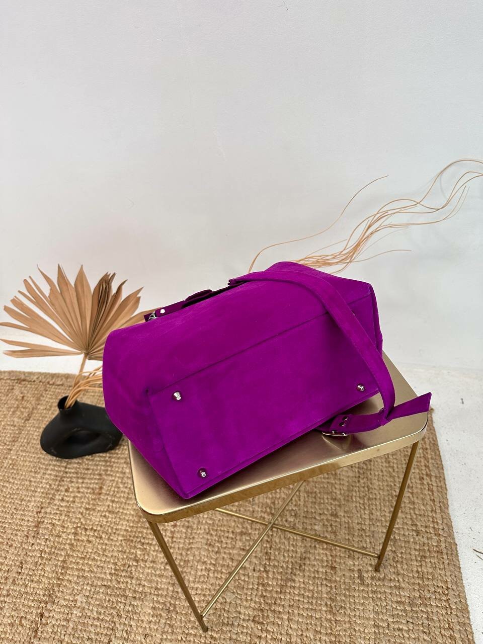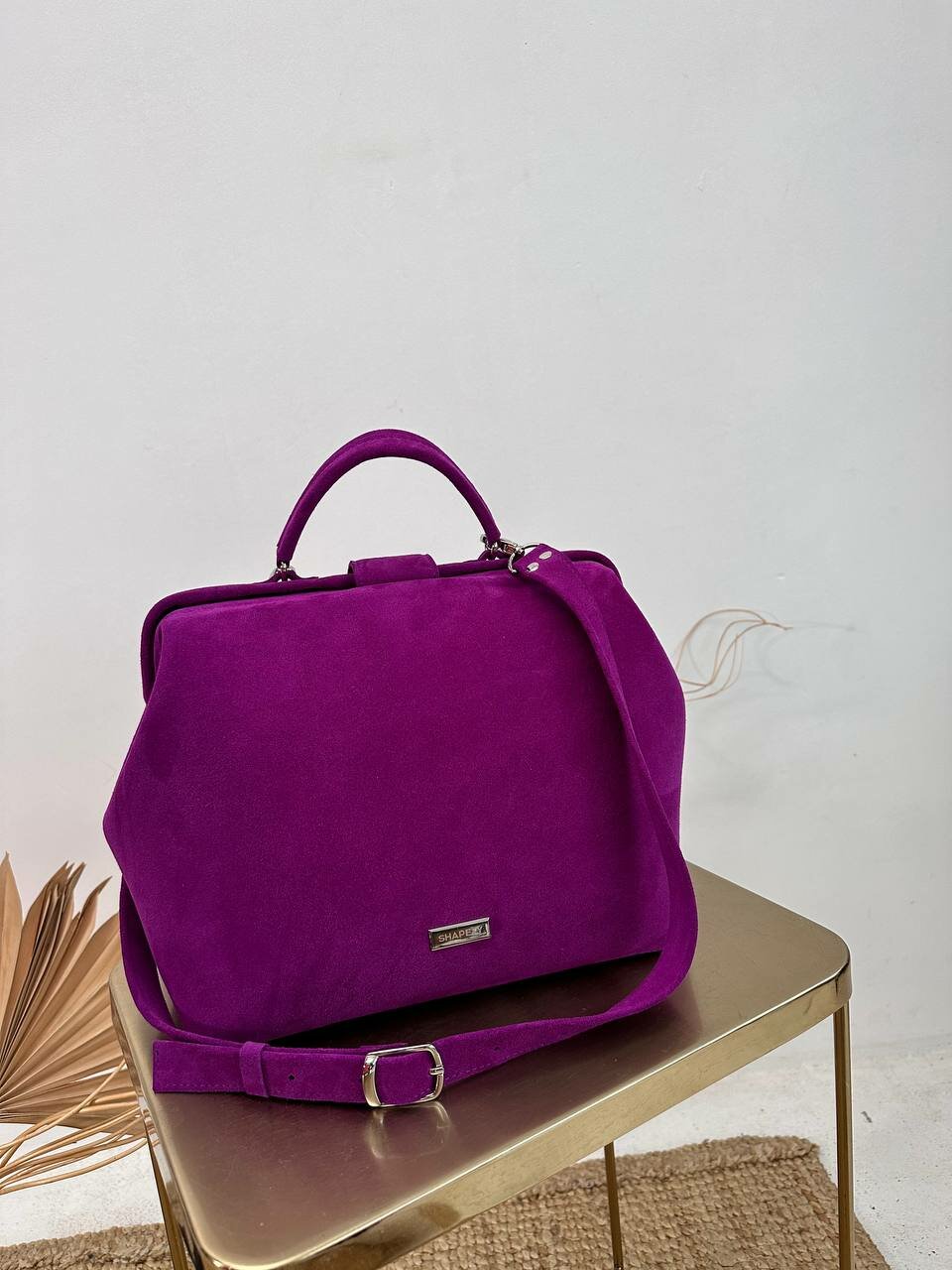 Сумка саквояж Shapely, фактура бархатистая, темно-фиолетовый
