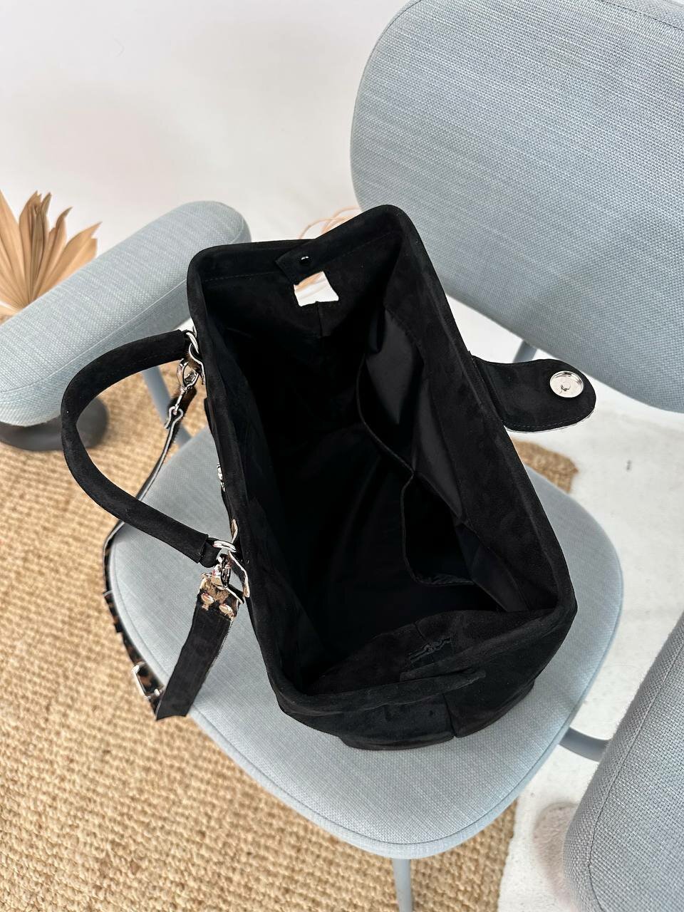 Сумка саквояж Shapely, фактура бархатистая, черная