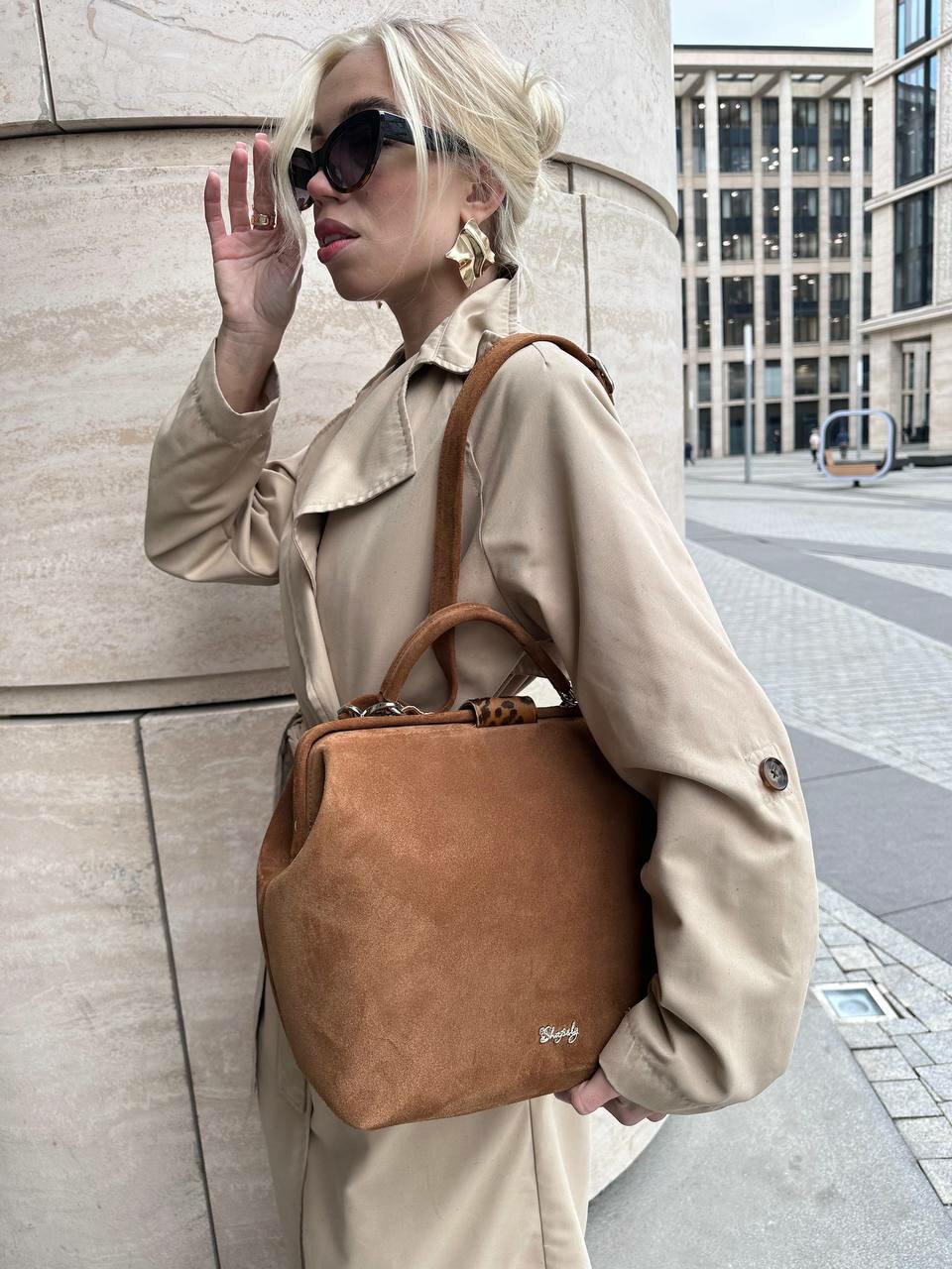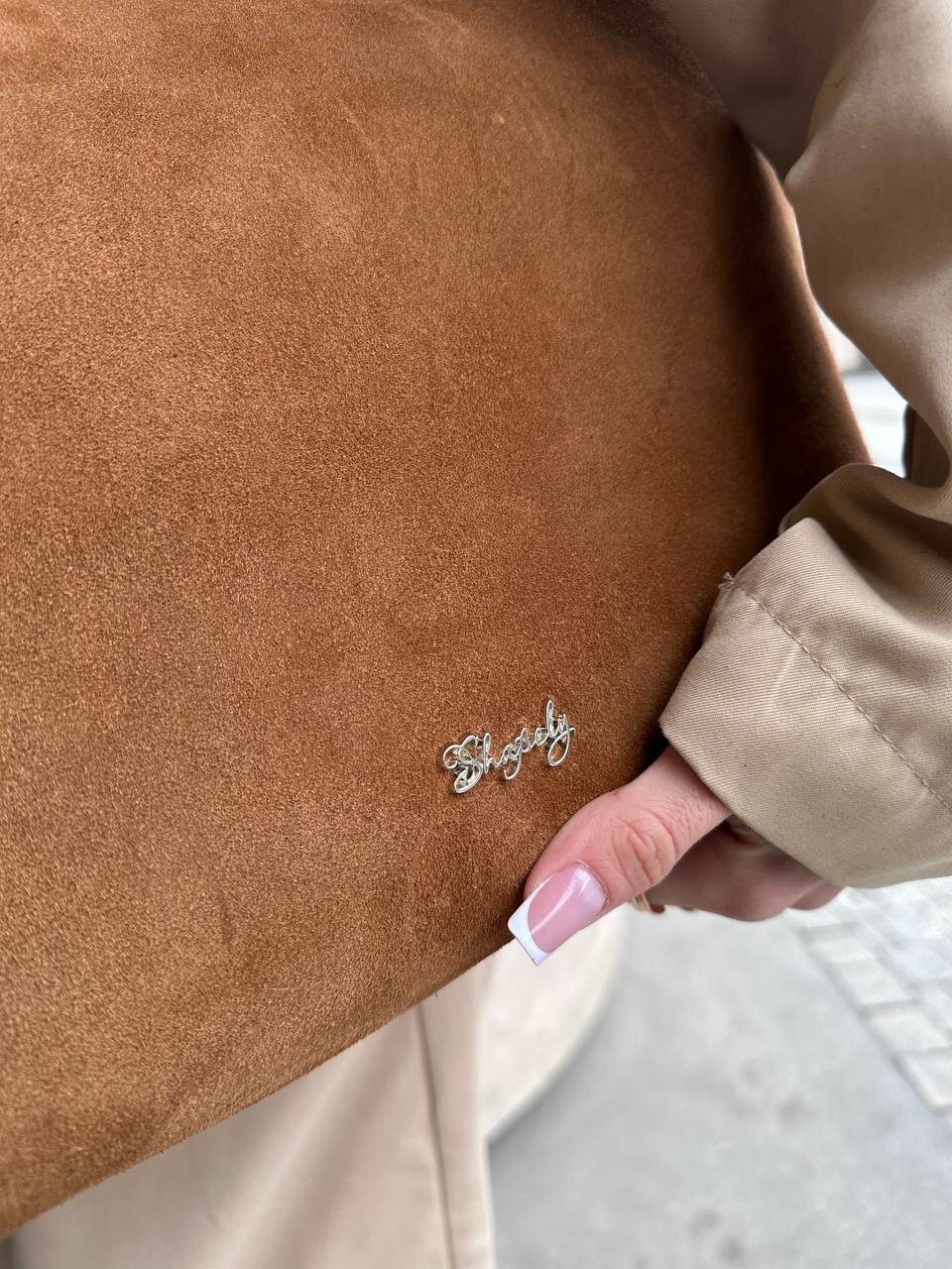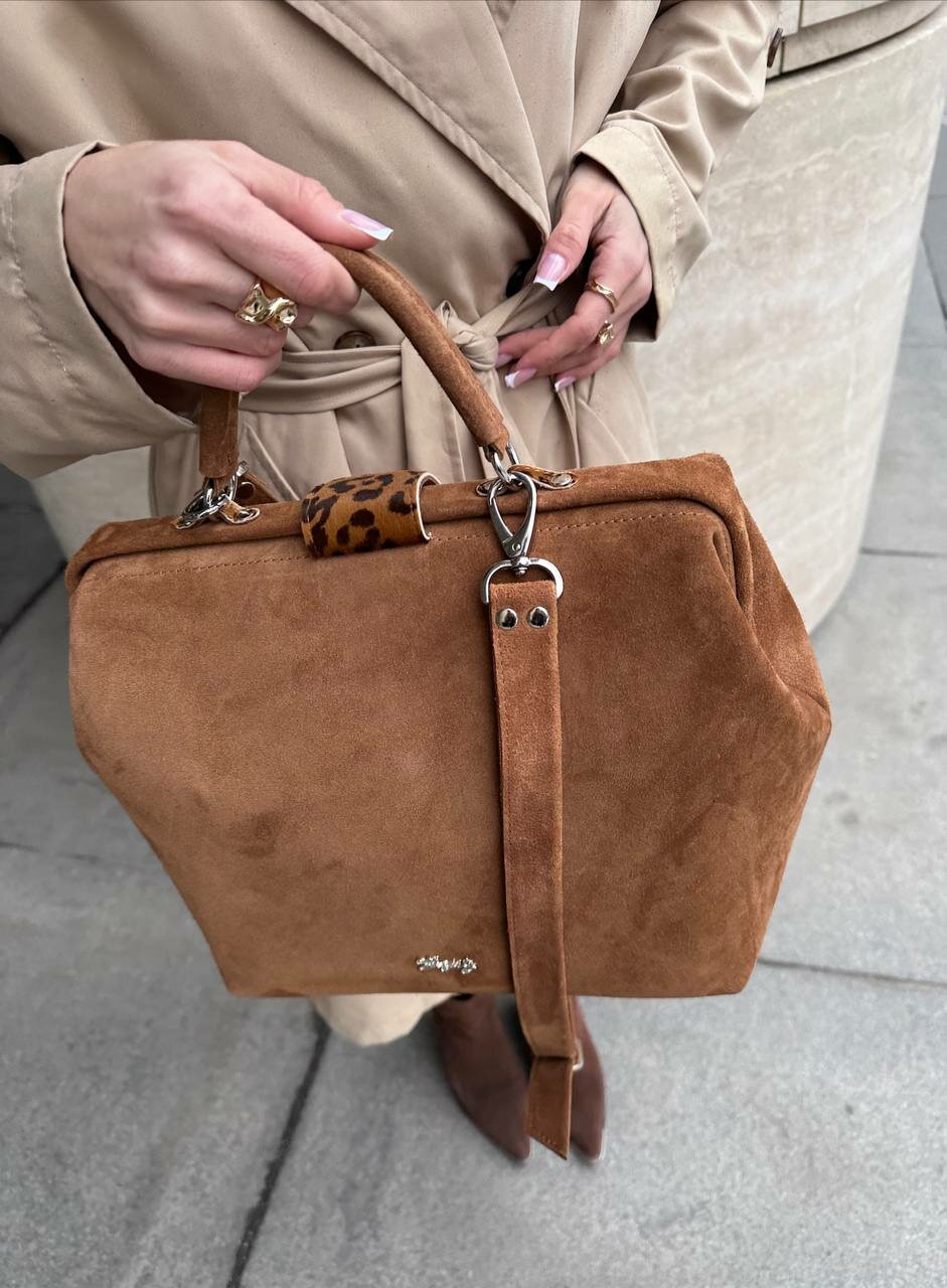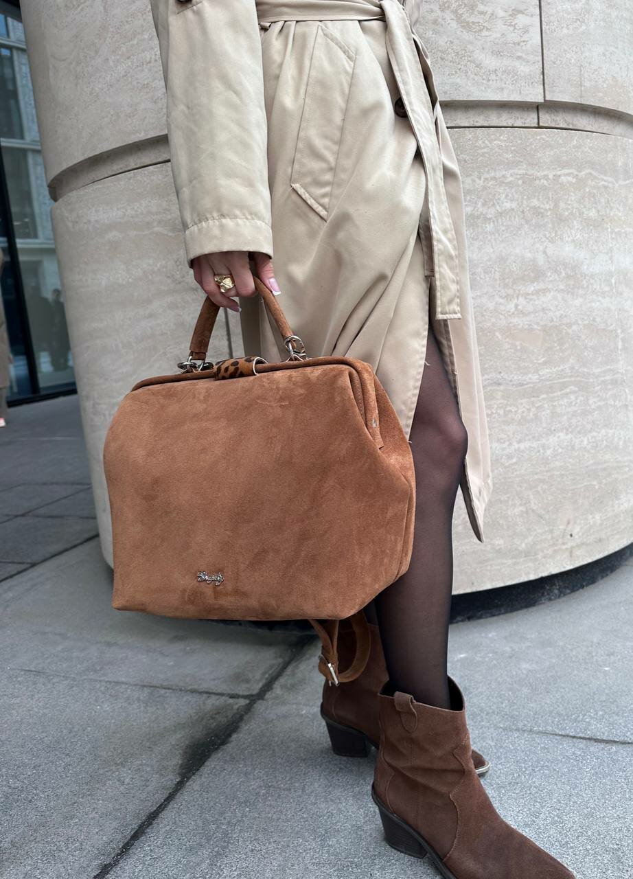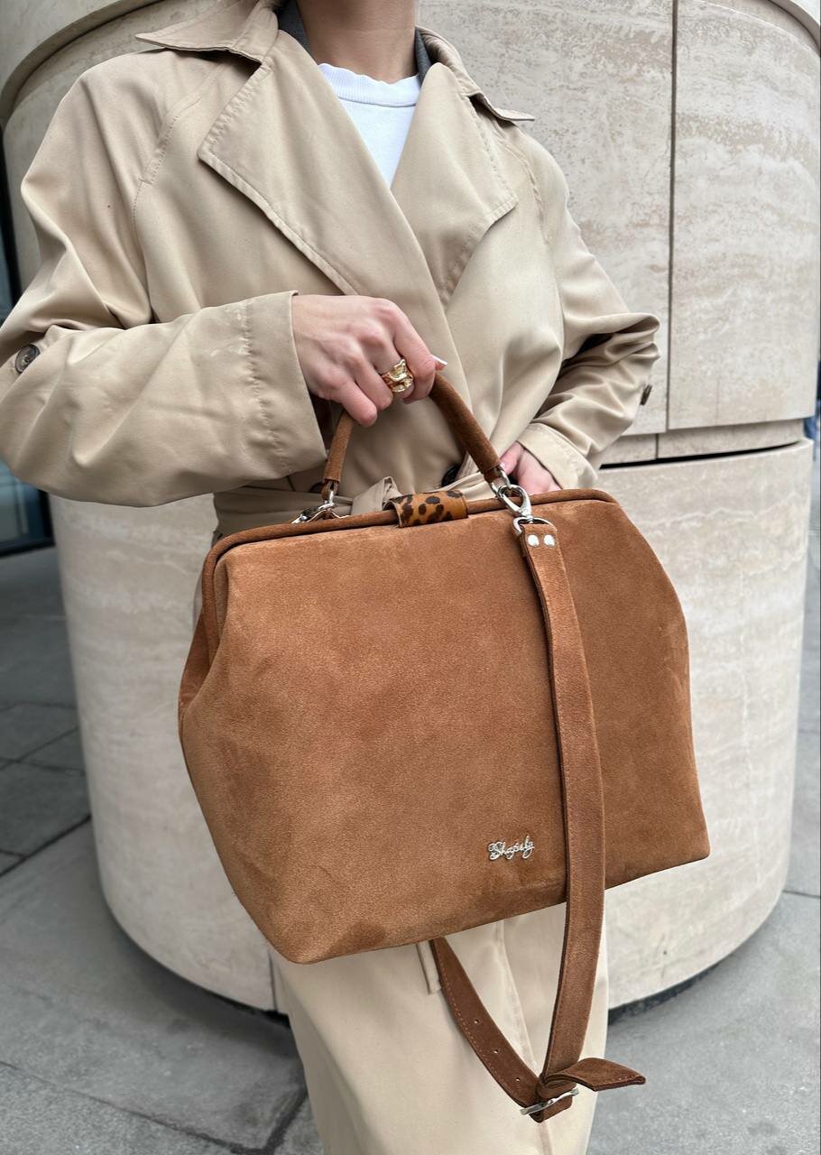 СохранитьСумка саквояж Shapely, фактура бархатистая, кэмел интересное: