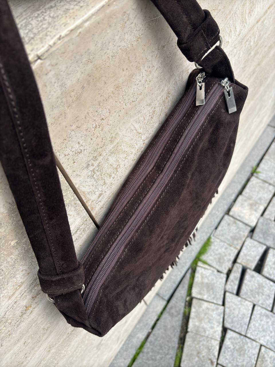 Сумка багет Shapely, фактура бархатистая, коричневый