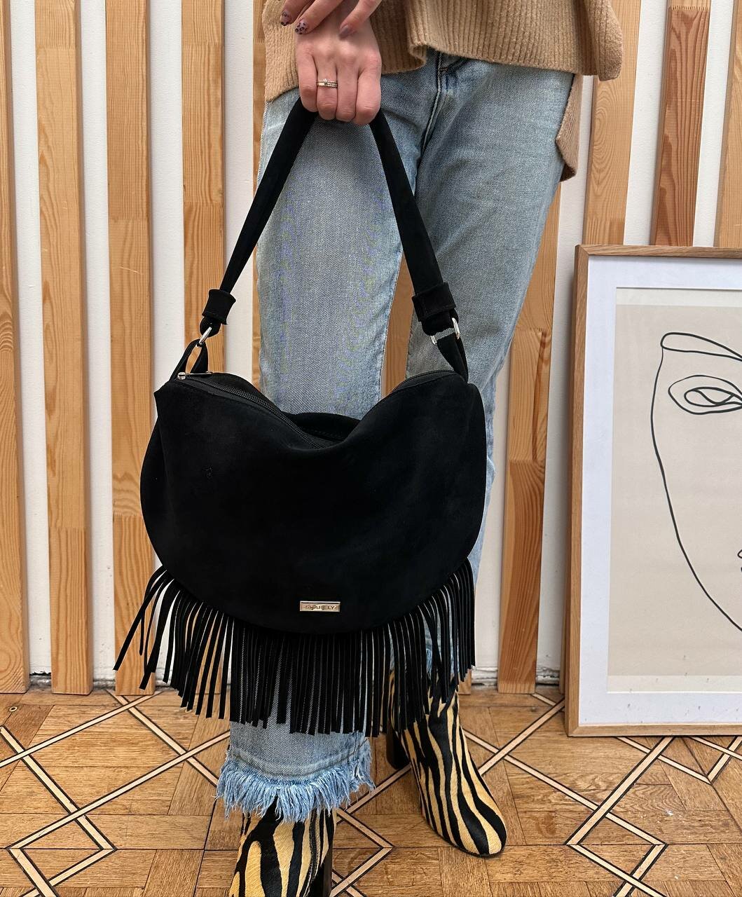 Купить Сумка Shapely, фактура бархатистая, черная кожа