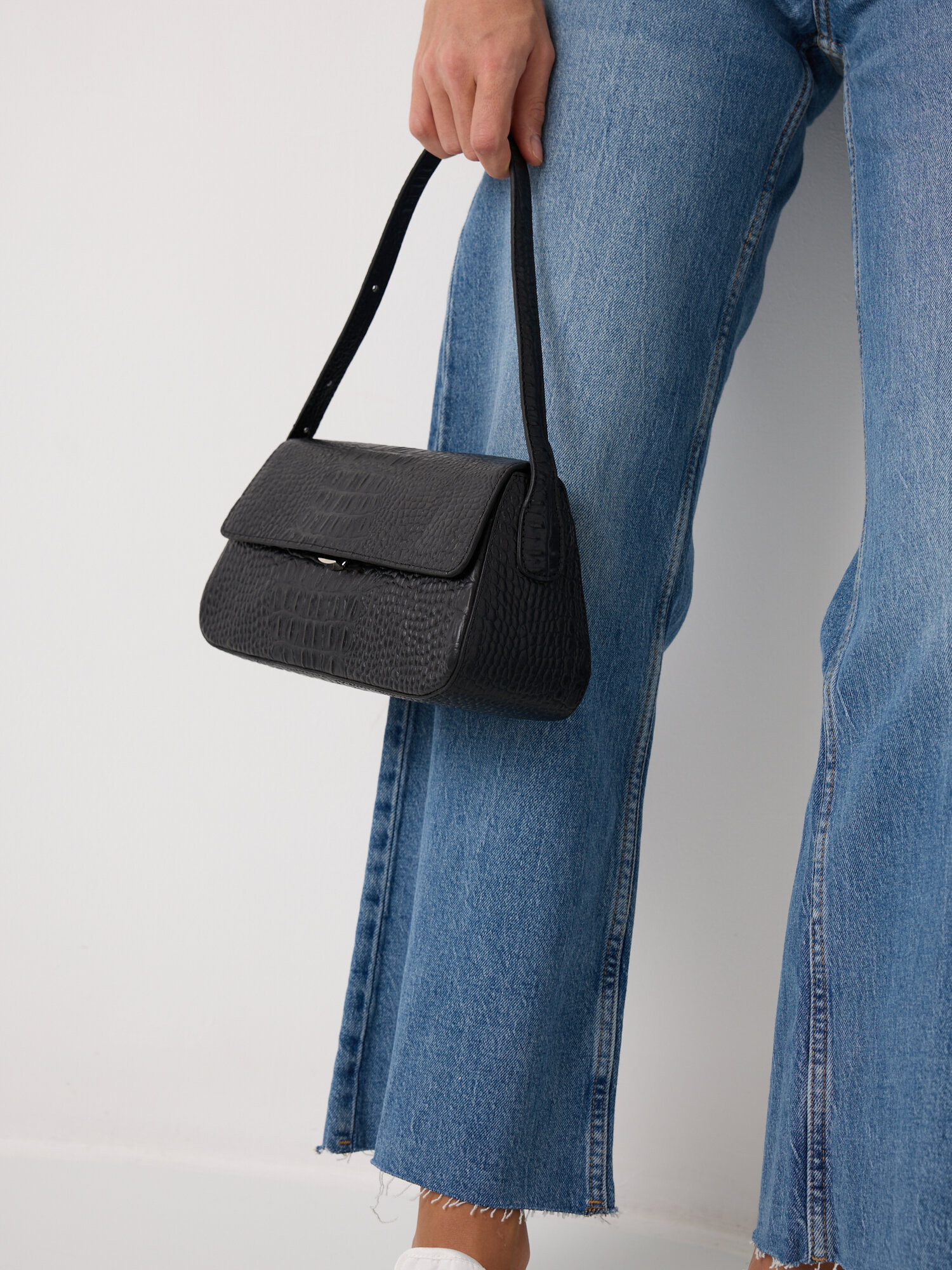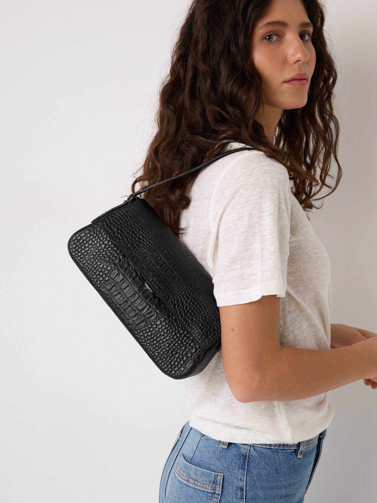 Сумка багет Franchesco Mariscotti Fabia, фактура под рептилию, черный питон