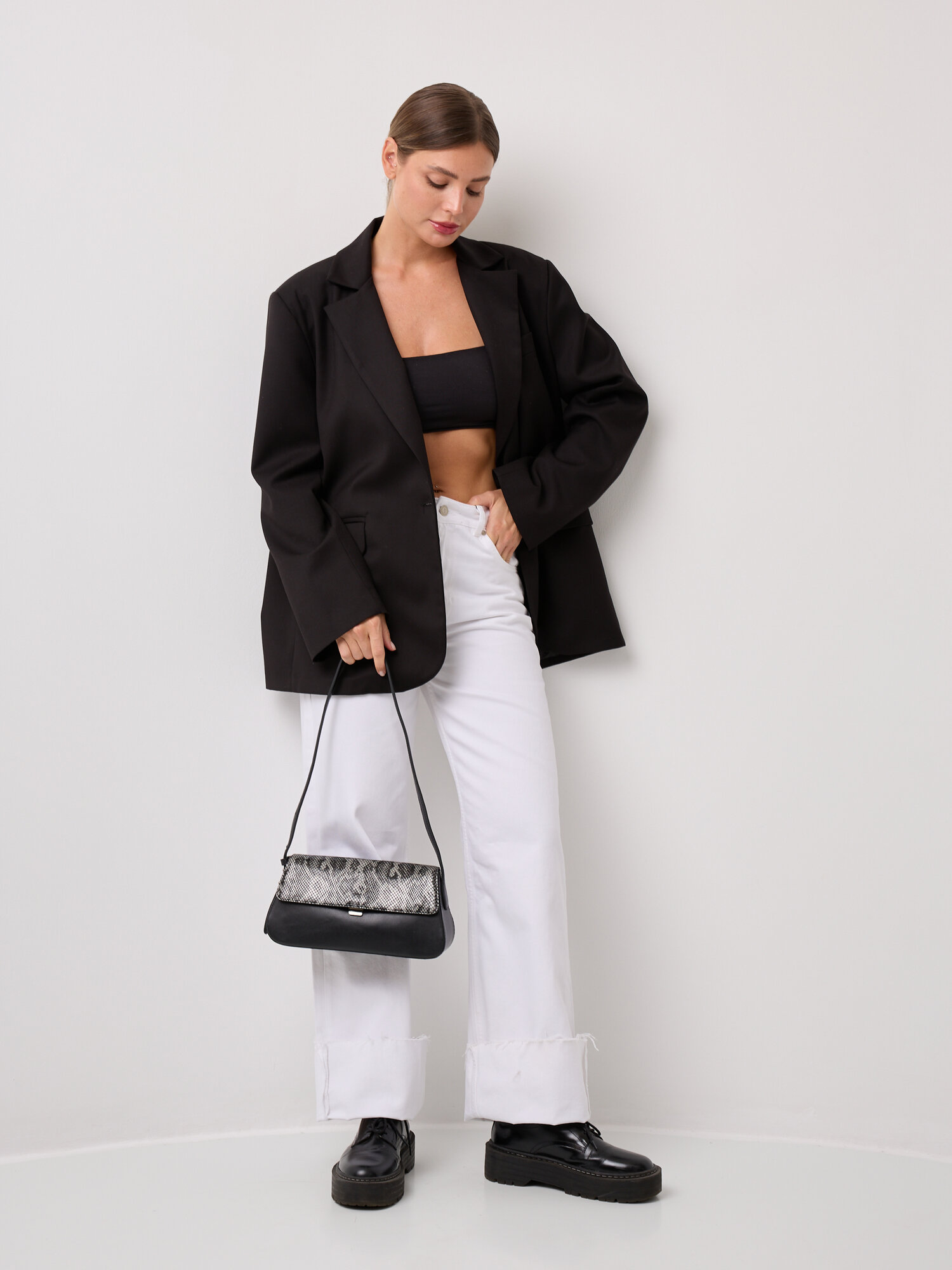 Сумка багет Franchesco Mariscotti Fabia, фактура под рептилию, черный питон интересное: