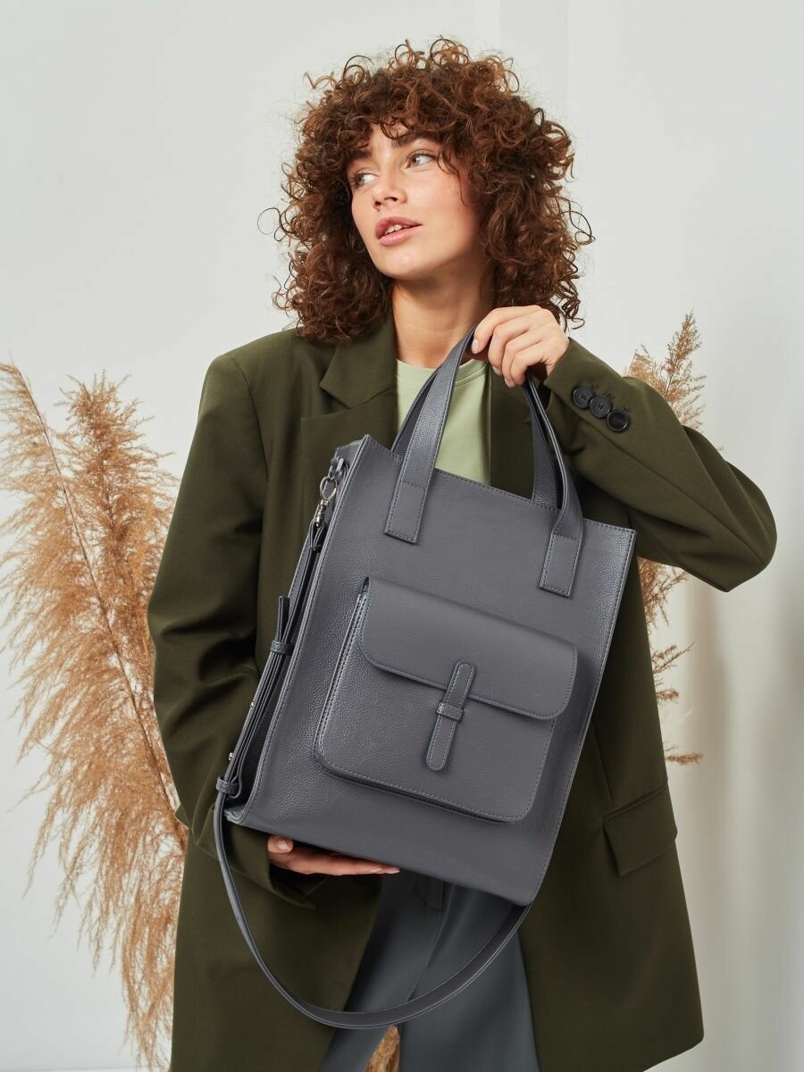 Сумка шоппер MYFLAFFICO Preppy, фактура гладкая, серый интересное:
