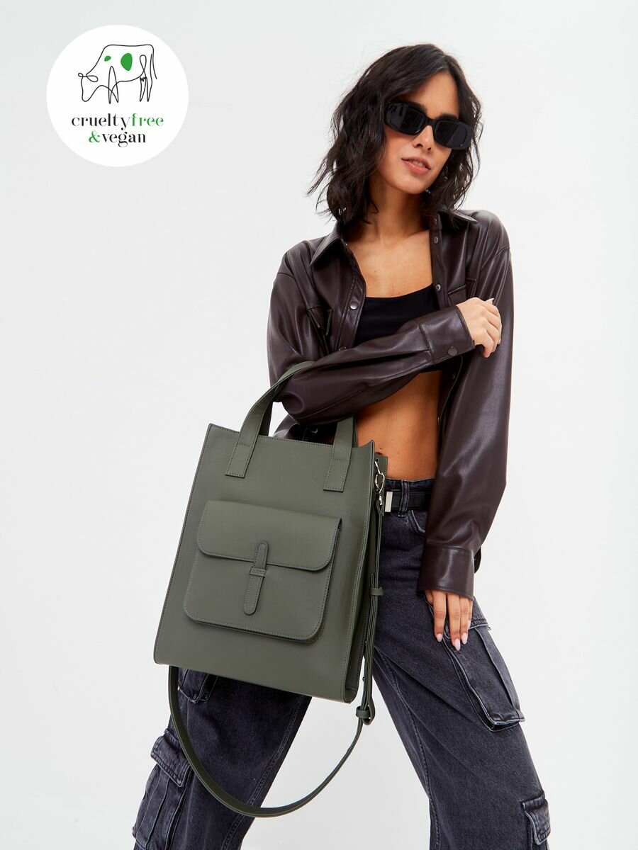 Купить Сумка шоппер MYFLAFFICO Preppy, фактура гладкая, хаки