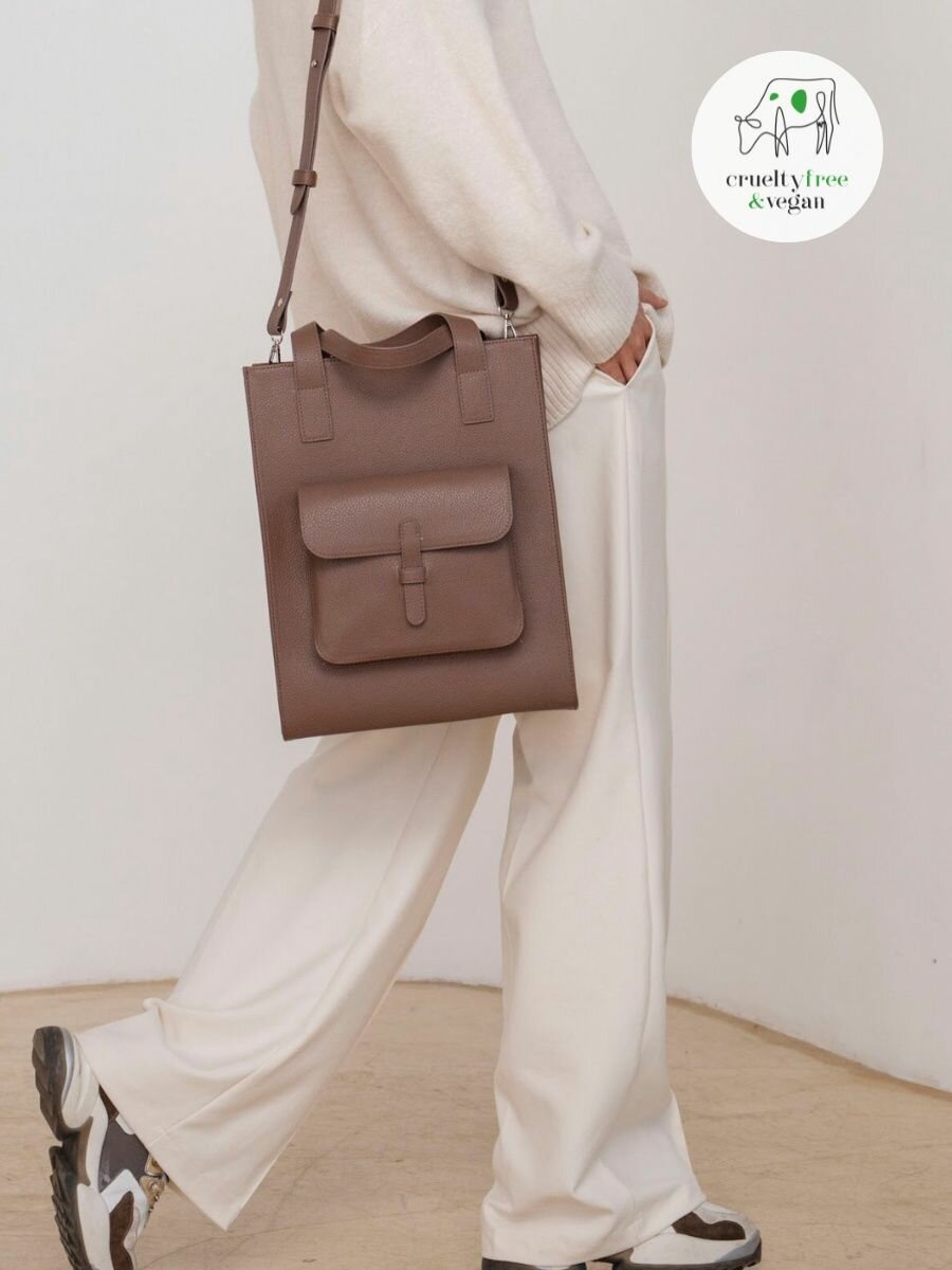 Сумка шоппер MYFLAFFICO Preppy, фактура гладкая, коричневый интересное: