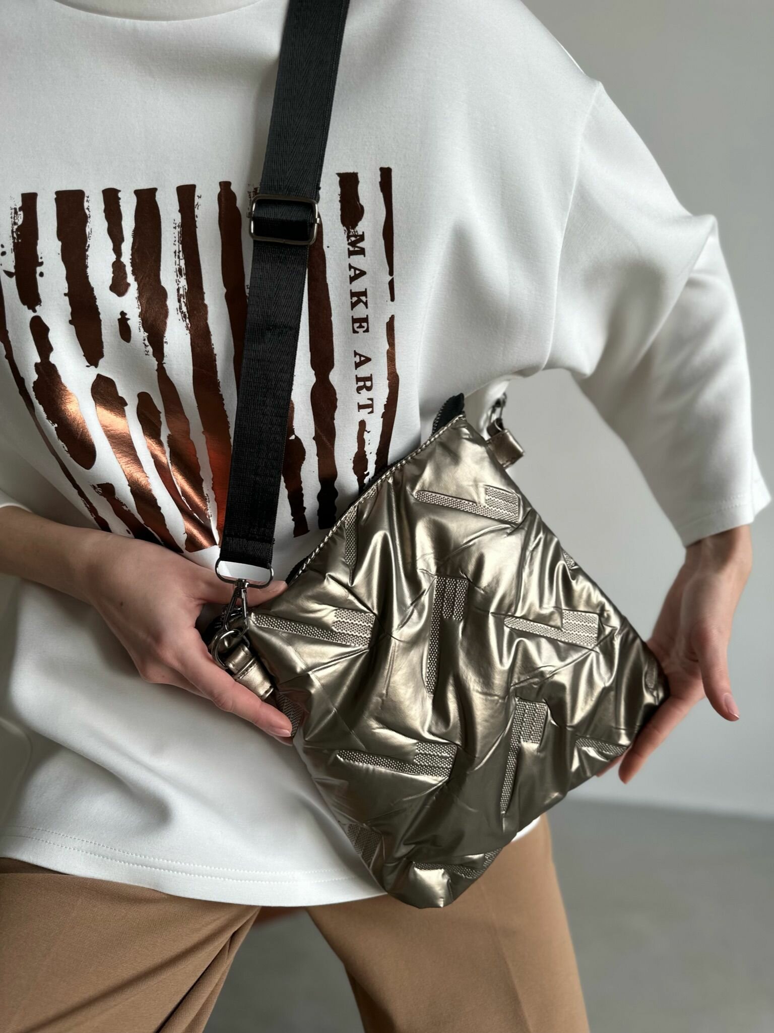 Сумка кросс-боди Vael, фактура стеганая, золотистый интересное: