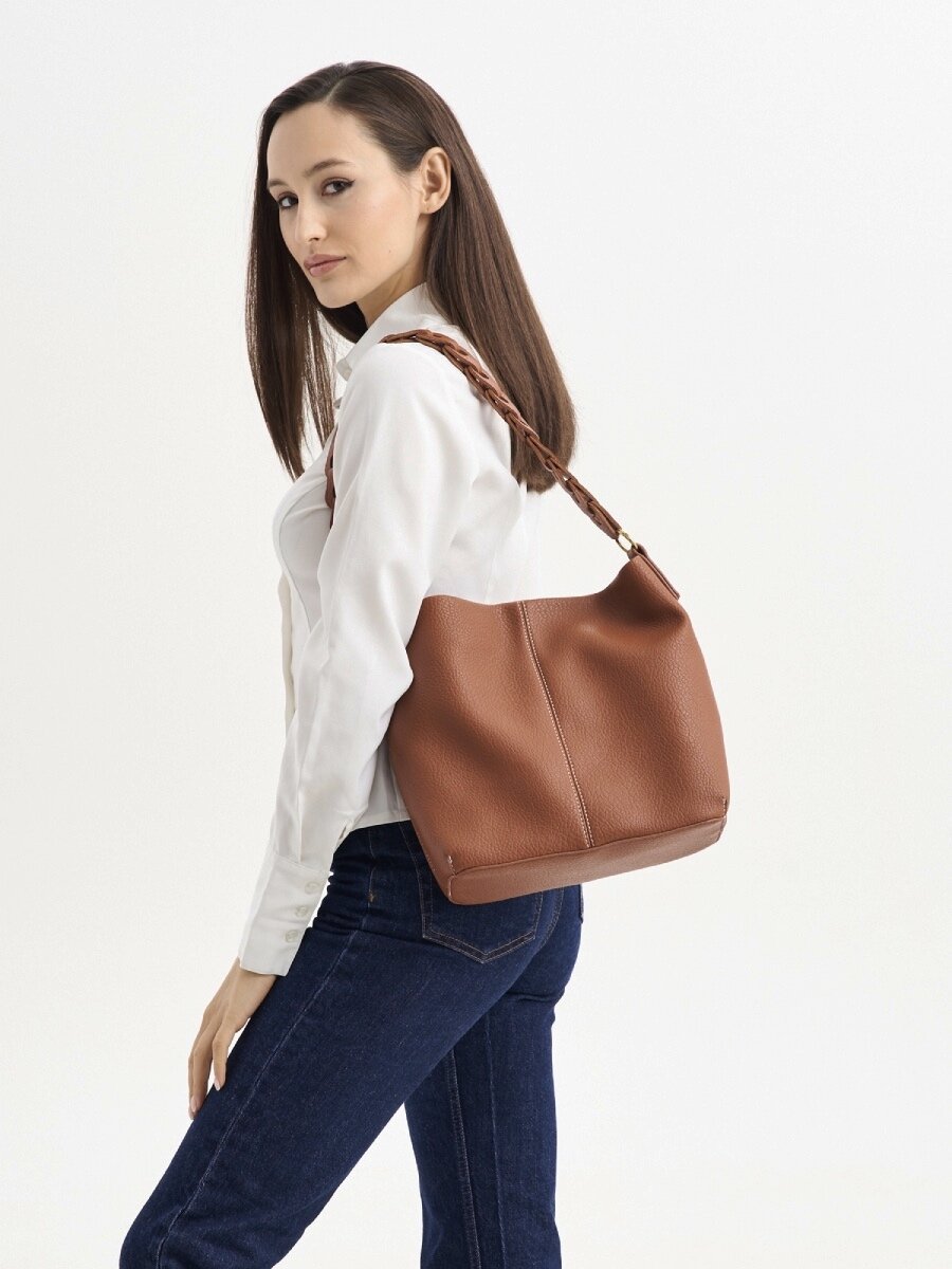 Сумка хобо Jane's Story, фактура зернистая, коричневый интересное: