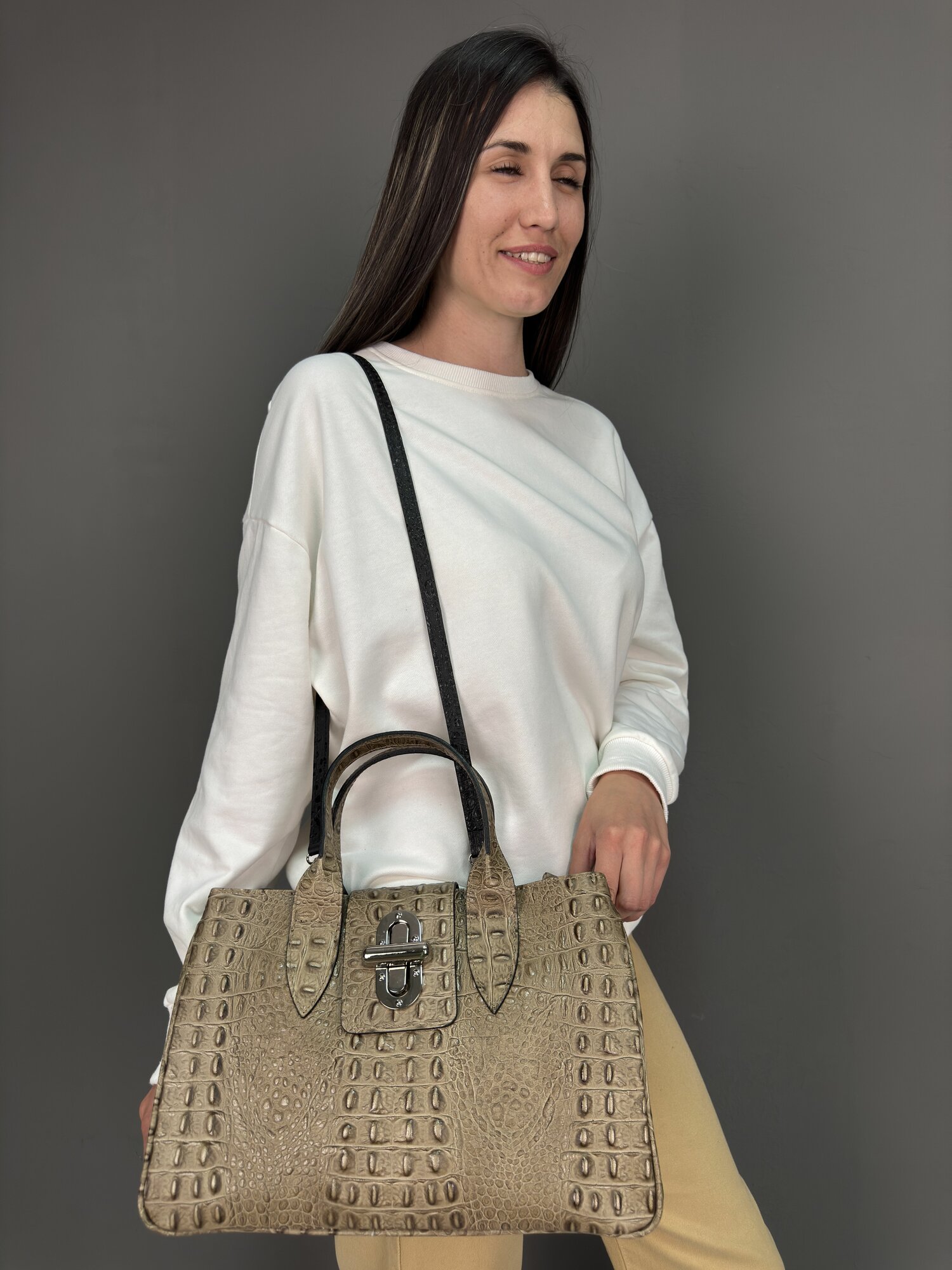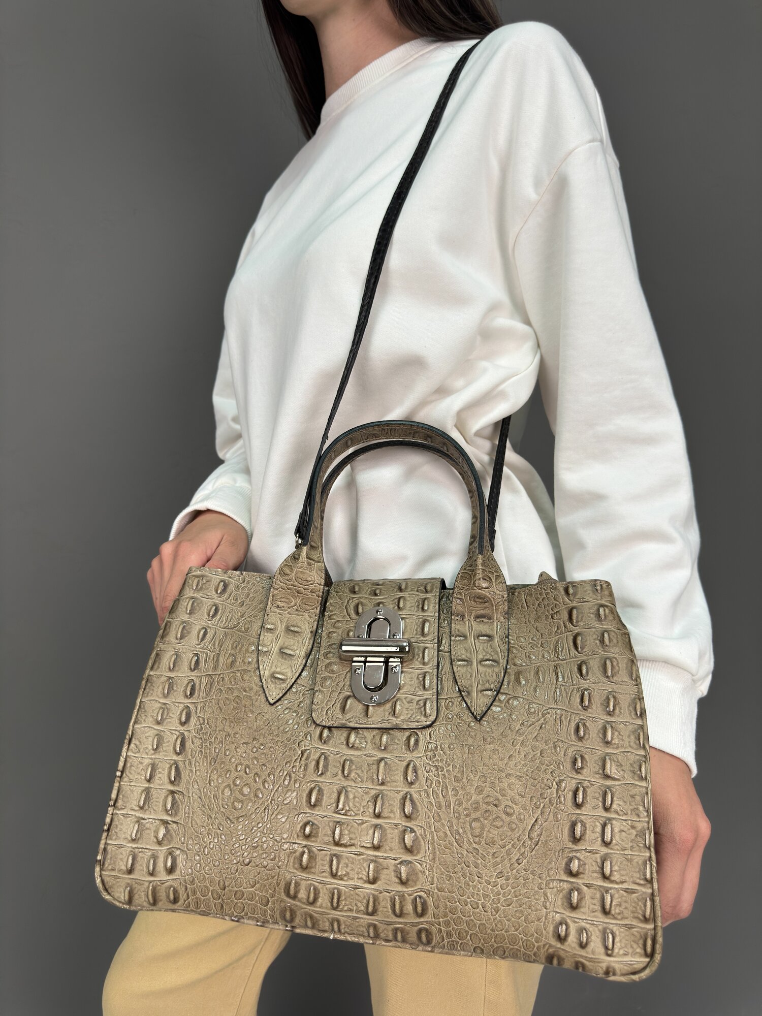 Сумка Sefaro, фактура под рептилию, бежевый интересное: