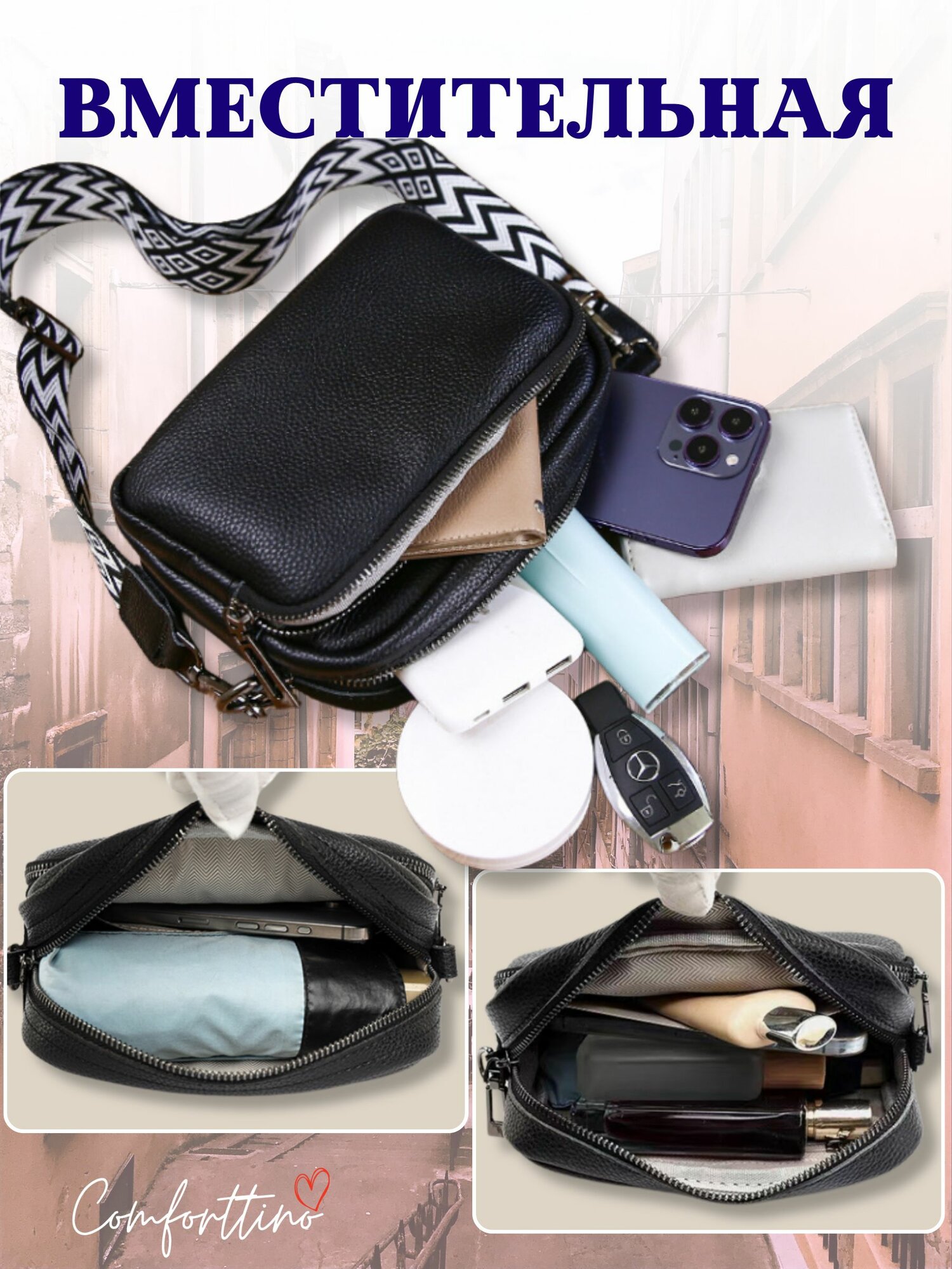 Ниже Вы можете прочитать отзывы на Сумка кросс-боди Comforttino, фактура матовая, черный, ознакомится с подробными характеристиками, посмотреть интересные обзоры и фотографии на Сумка кросс-боди Comforttino, фактура матовая, черный.