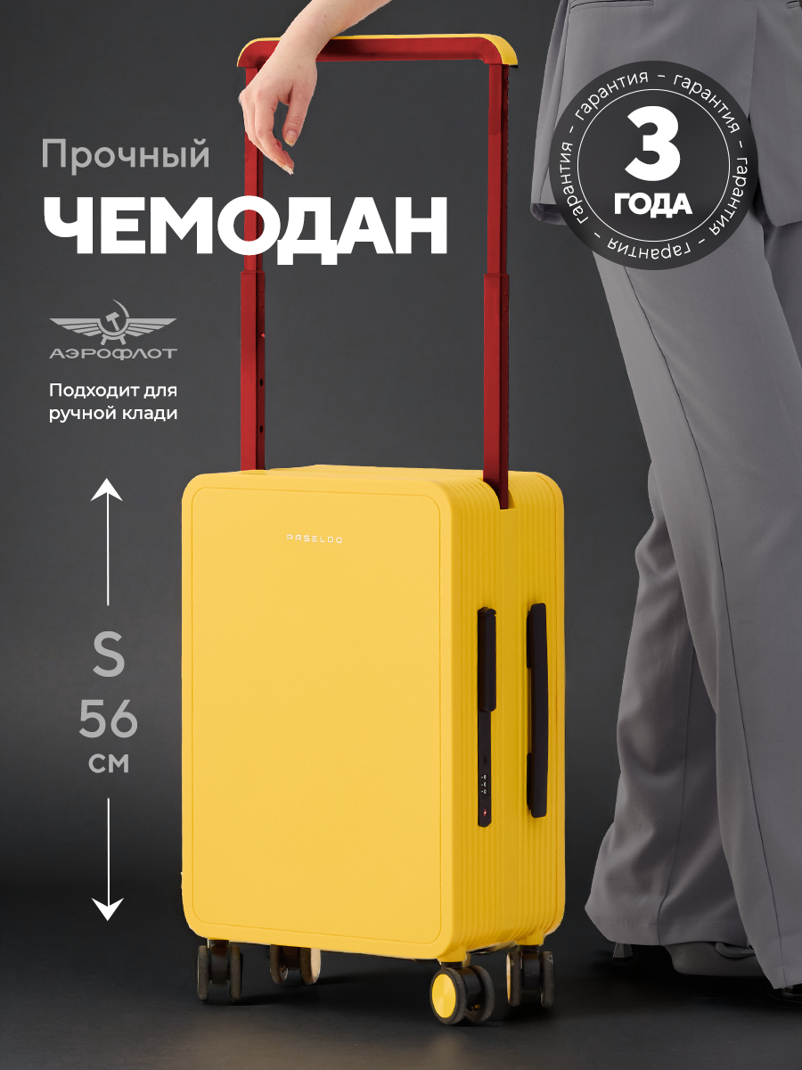 Чемодан PASELDO, 33 л, размер S, желтый, красный интересное: