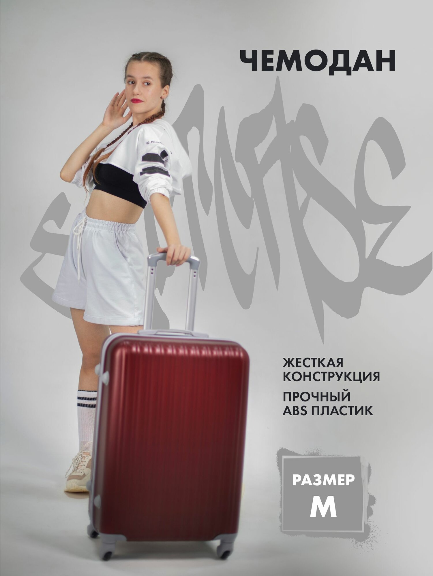 Чемодан LET'S BAG, 50 л, размер M, бордовый интересное: