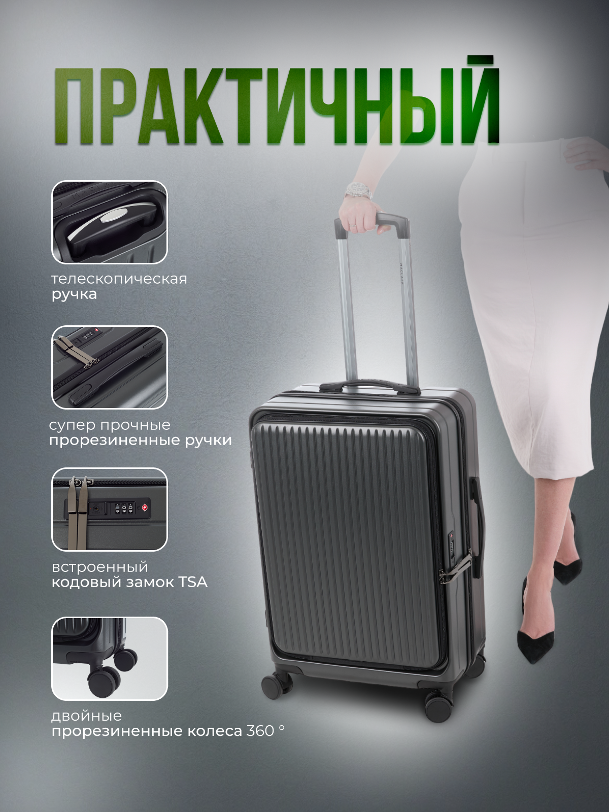 Чемодан MACLAER, 35 л, размер S, черный интересное: