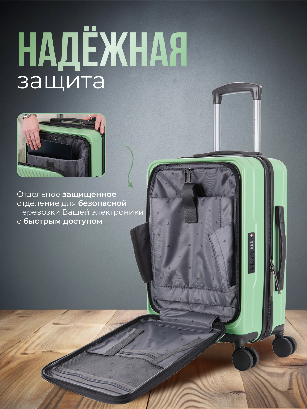 Чемодан MACLAER, 35 л, размер S, бирюзовый, зеленый интересное: