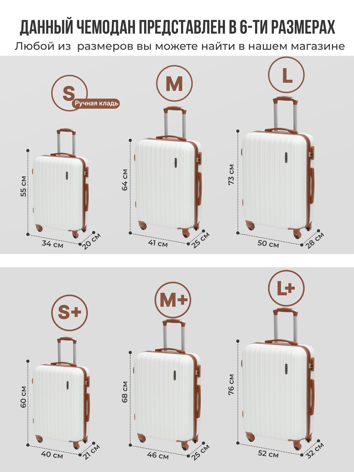 Чемодан TEVIN, 77 л, размер M+, белый/коричневый