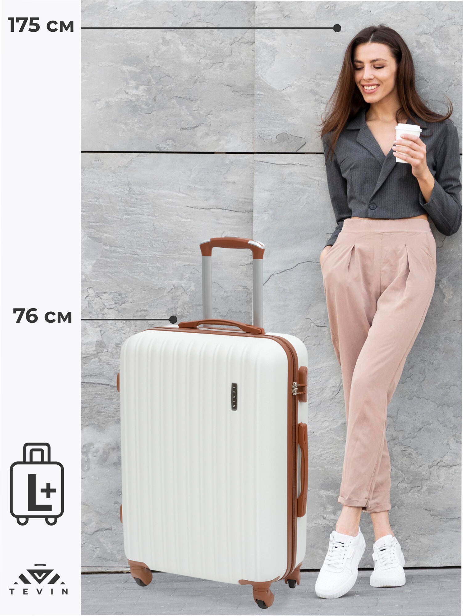 Чемодан TEVIN, 105 л, размер L, белый/коричневый