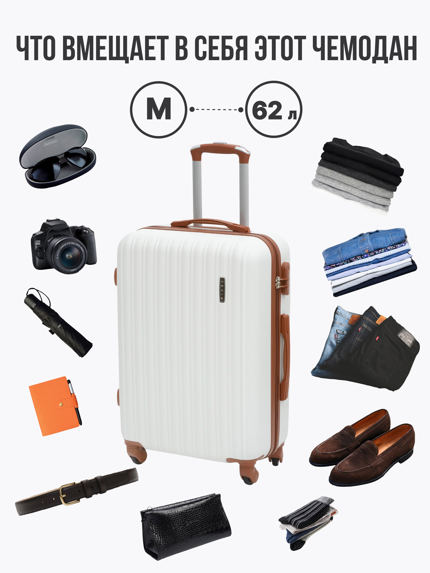 СохранитьЧемодан TEVIN, 62 л, размер M, белый/коричневый интересное: