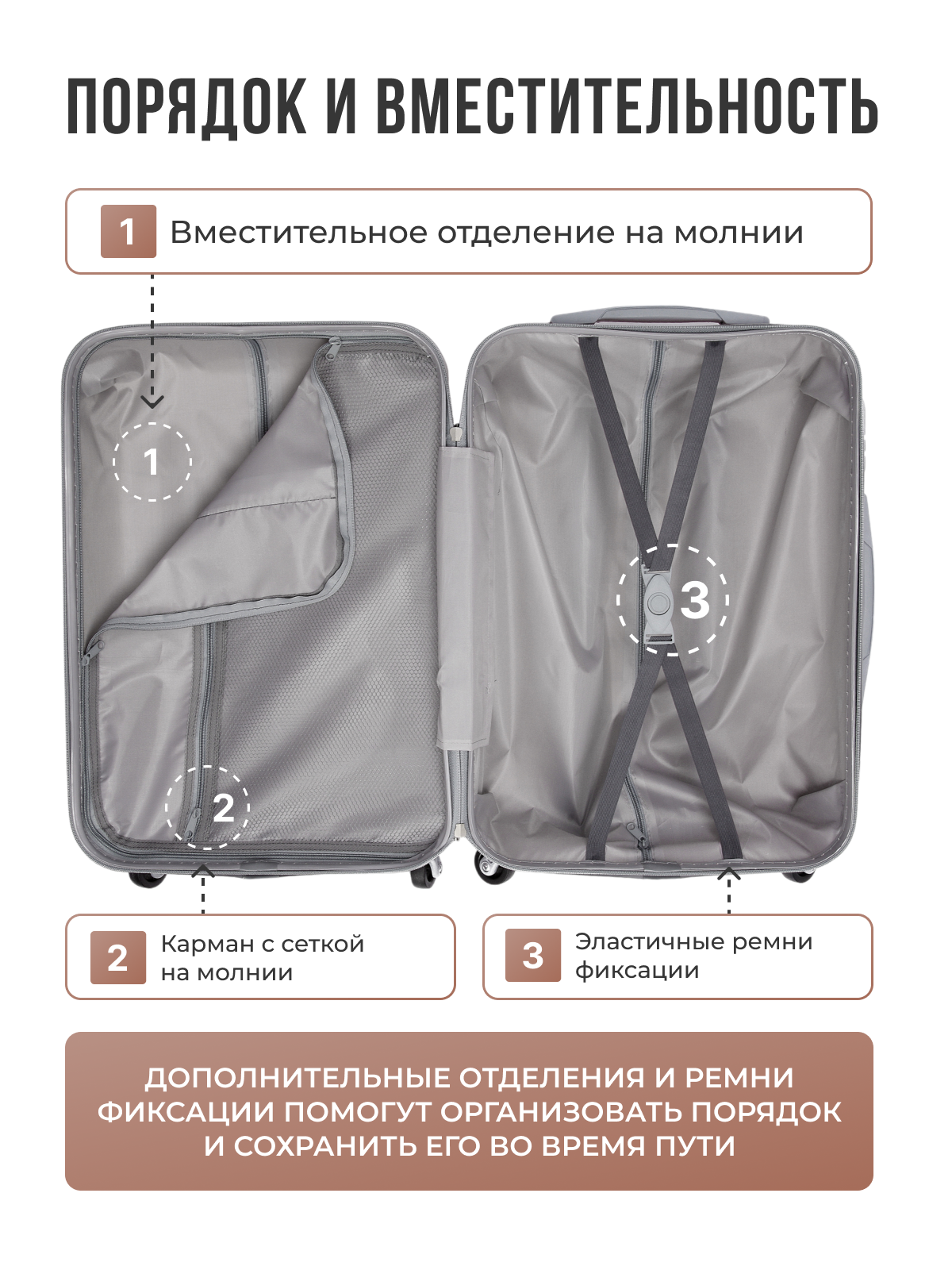 Чемодан TEVIN, 120 л, размер L+, белый/коричневый