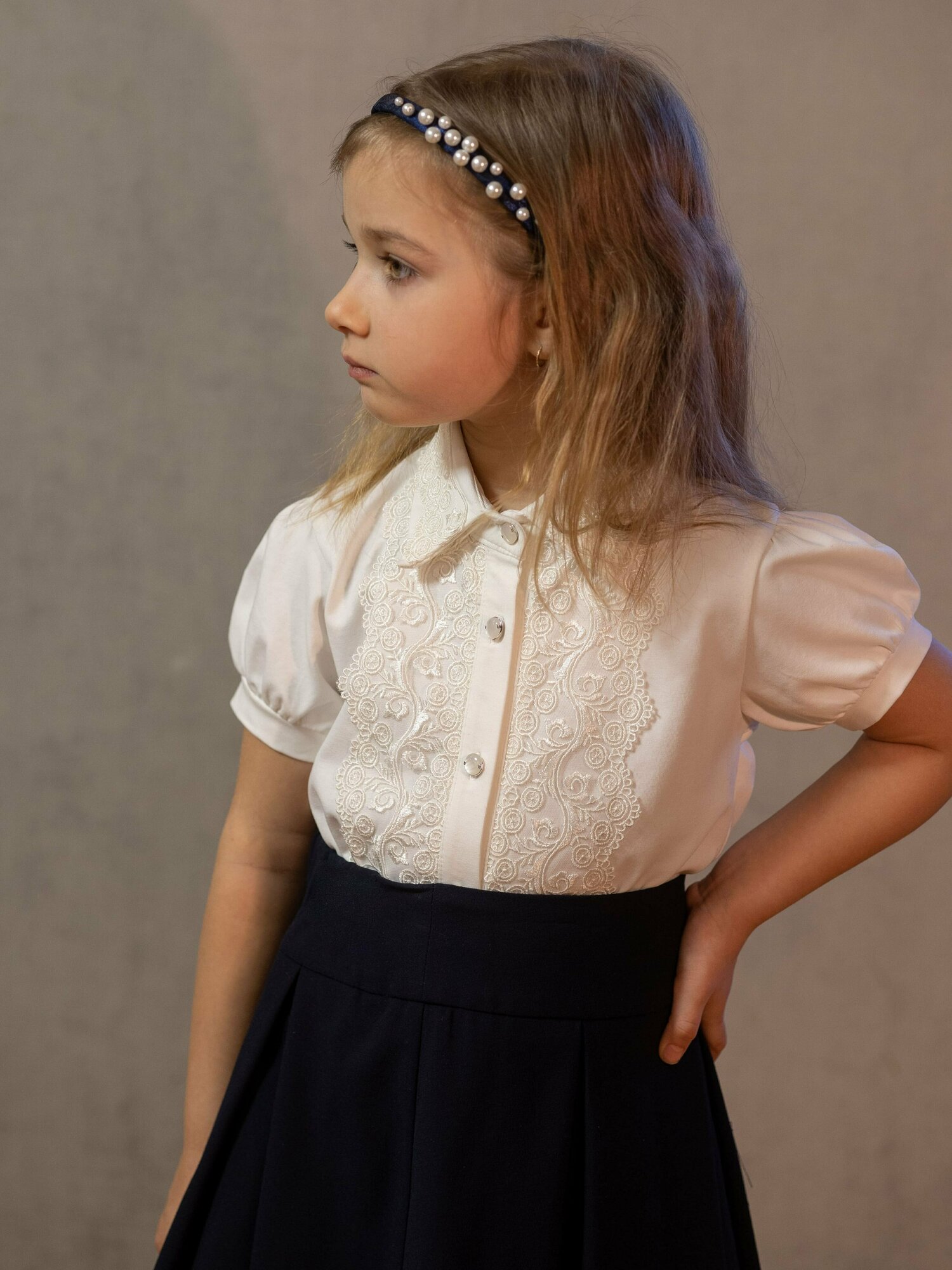 Школьная блуза Наследникъ Выжанова Детская, размер 128, экрю интересное: